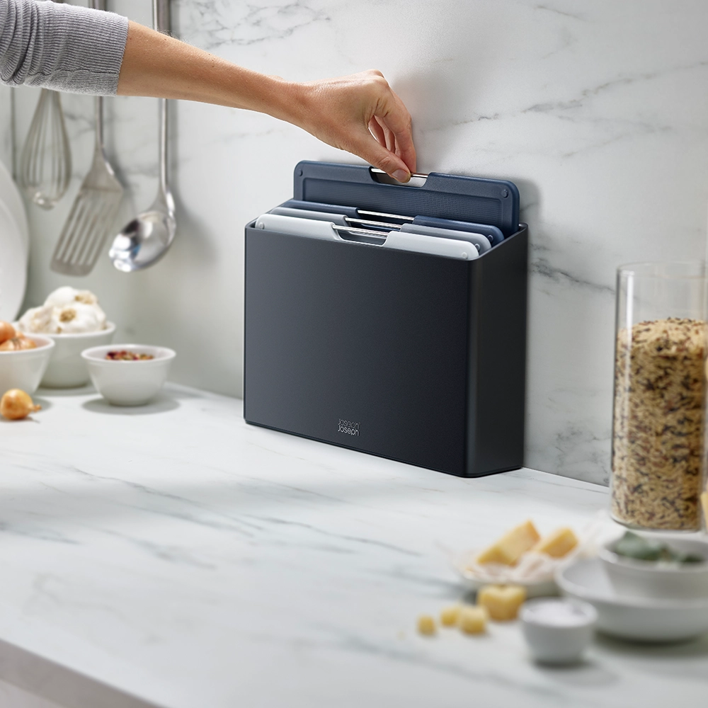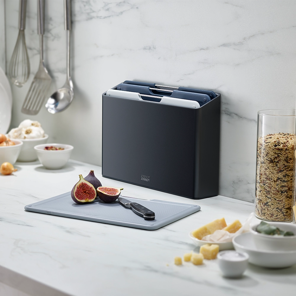 De snijplankenset van Joseph Joseph biedt functionaliteit gecombineerd met elegantie. Elke plank in de set is ontworpen met oog voor detail en praktisch gebruik, terwijl de stevige snijplankhouder zorgt voor een georganiseerde opbergoplossing. Deze set is ideaal voor het bereiden van verschillende ingrediënten zonder kruisbesmetting, waardoor je kookervaring veiliger en hygiënischer wordt.