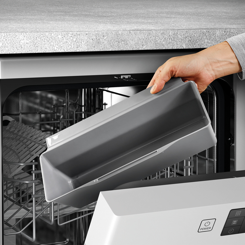 De aanrecht prullenbak van Tomado is gemaakt van grijs kunststof en komt met een praktisch schrapertje om alle restjes afval van het aanrecht zó in het afvalbakje te schuiven. De afvalemmer voor het aanrecht is 35 cm breed, 16 cm diep en 13 cm hoog.