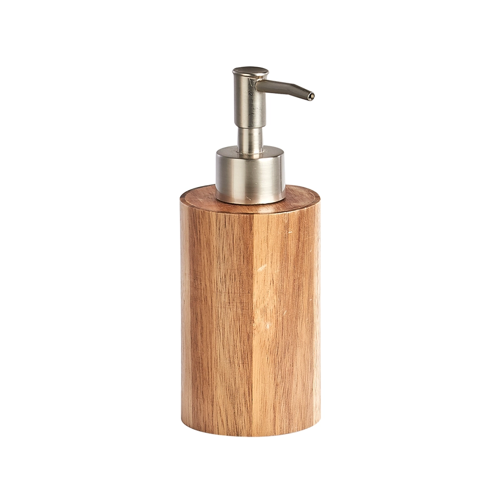 Met afmetingen van ongeveer Ø 7 cm in diameter en 17,5 cm hoog neemt deze zeepdispenser niet veel ruimte in beslag maar maakt het wel een stijlvolle indruk. De Acacia zeepdispenser valt onmiddellijk op door de unieke, gevarieerde nerf van het acaciahout. Elk zeeppompje is een kunstwerk op zich, met een eigen uniek patroon dat natuurlijke schoonheid in je badkamer brengt.