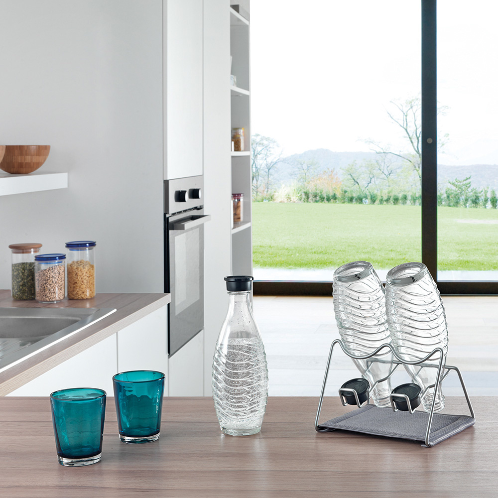 Dit afdruiprek voor flessen heeft een eenvoudig, strak design. Perfect voor SodaStream flessen.