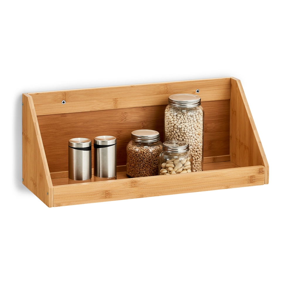 Het kruiden wandrek van Zeller Present is niet alleen geschikt voor in de keuken, maar ook voor gebruik in de badkamer of werkkamer. Dankzij het stevige bamboe en het tijdloze design blijft dit rek jarenlang mooi én bruikbaar. Het verhoogde randje zorgt ervoor dat je spullen altijd netjes op hun plek blijven, zelfs op drukke momenten in de keuken.