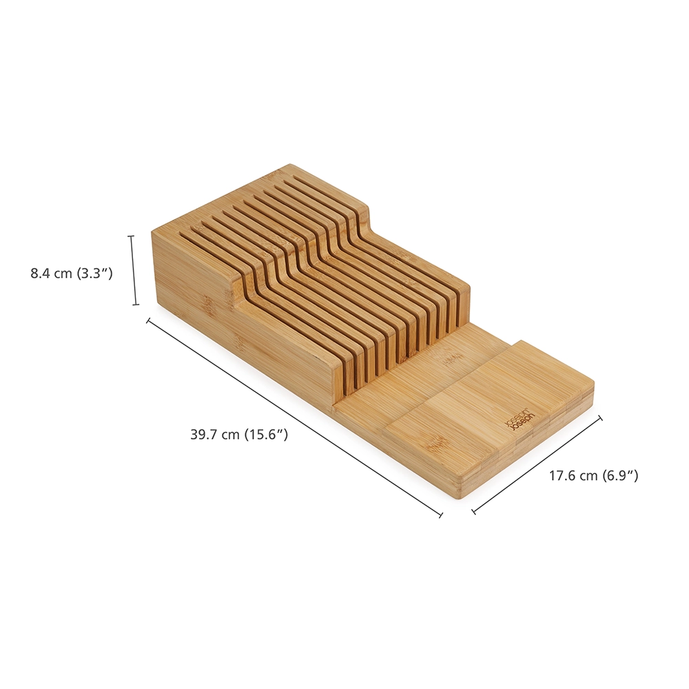 De DrawerStore™ bamboe messen organizer is de perfecte manier om je messen veilig en georganiseerd in de lade op te bergen. Of je nu op zoek bent naar een ruimtebesparend messenblok voor in de lade of een manier om je messen overzichtelijk te ordenen, deze messenhouder voor een lade biedt de oplossing die je nodig hebt.