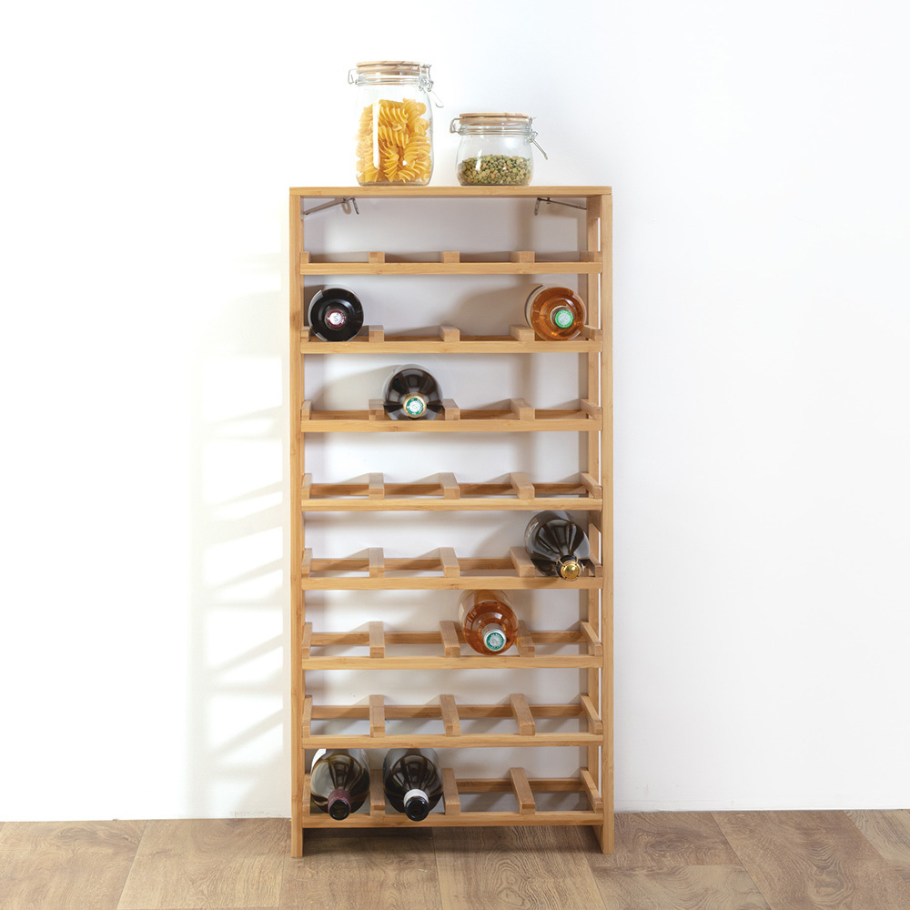 Dit bamboe wijnrek is passend in elke (bij)keuken of woonkamer. Dit bamboe wijnrek is beschikbaar in 2 verschillende maten geschikt voor 12 of maarliefst 32 wijnflessen.