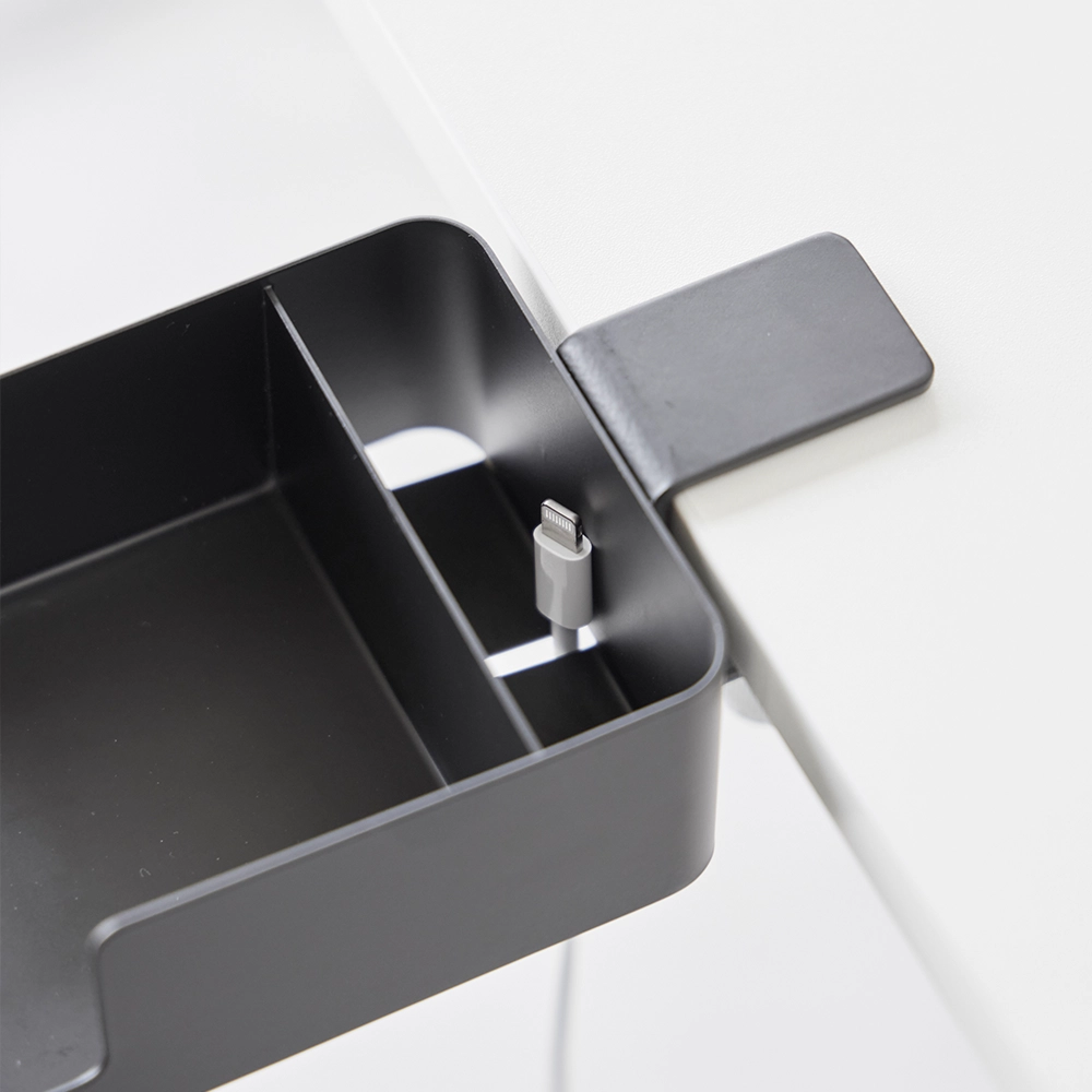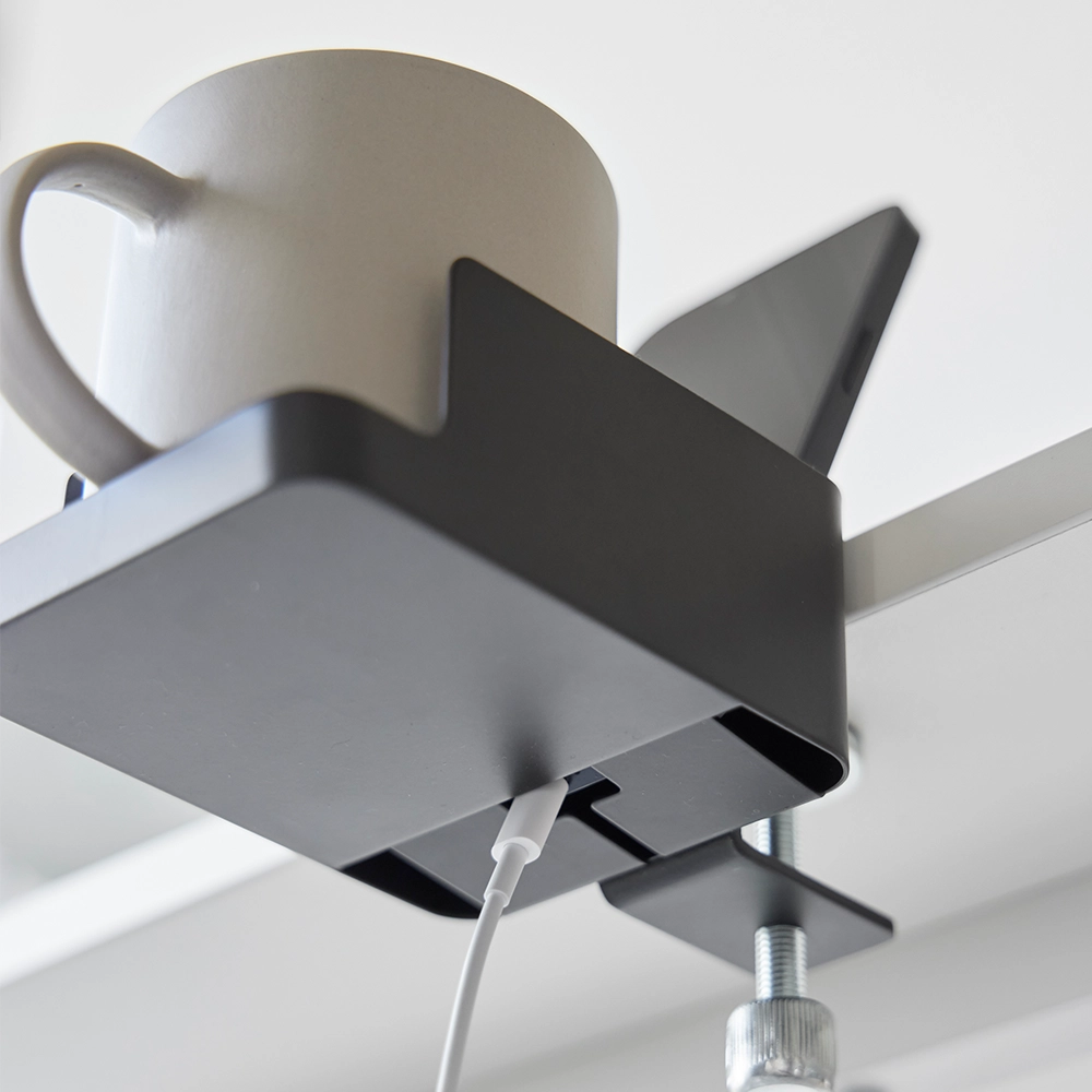 Deze bureau organizer van Yamazaki combineert functionaliteit en design in één compacte oplossing. Dankzij de verstelbare klem kun je de organizer gemakkelijk aan verschillende oppervlakken bevestigen, zoals een bureaublad of leuning. De combinatie van een bekerhouder en telefoonhouder maakt het een ideaal accessoire voor elke werkplek, waarbij je apparaten veilig kunt opbergen en eenvoudig kunt opladen zonder dat er kabels in de weg liggen.