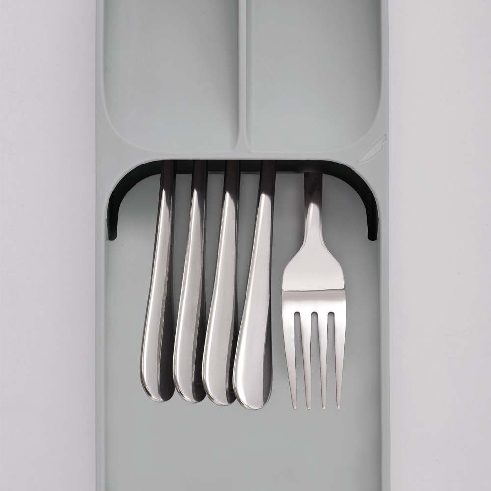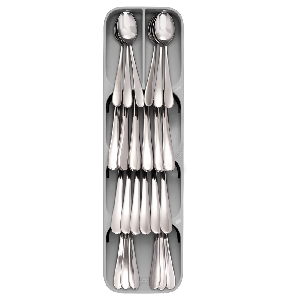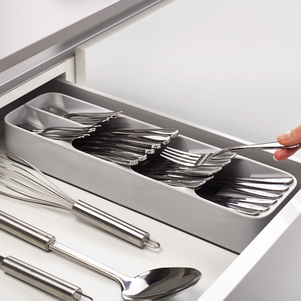 Met deze bestekbak van het merk Joseph Joseph kun je de ruimte in je keukenlade optimaal benutten - ideaal voor kleine keukens! De unieke constructie van deze keukenlade organizer creëert ruimte voor messen, vorken en lepels die in conventionele bestekdozen minstens twee keer zoveel ruimte nodig hebben.