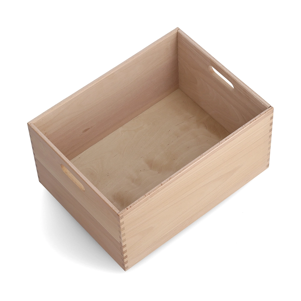 Dankzij de handige handgrepen aan de zijkant is de kist eenvoudig te verplaatsen, terwijl de stapelstrips ervoor zorgen dat meerdere kisten stabiel op elkaar geplaatst kunnen worden, waardoor je optimaal gebruik kunt maken van de beschikbare ruimte. Deze houten kist is perfect voor het organiseren van diverse spullen, of het nu gaat om speelgoed in de kinderkamer, documenten op kantoor of gereedschap in de hobbykamer. De stevige constructie en het robuuste materiaal zorgen ervoor dat de kist jarenlang meegaat. Dankzij de verschillende beschikbare formaten kun je altijd de juiste maat vinden voor jouw opbergbehoeften. De veelzijdigheid van deze opbergkist maakt hem onmisbaar in elk huishouden. Beschikbaar in de volgende formaten: