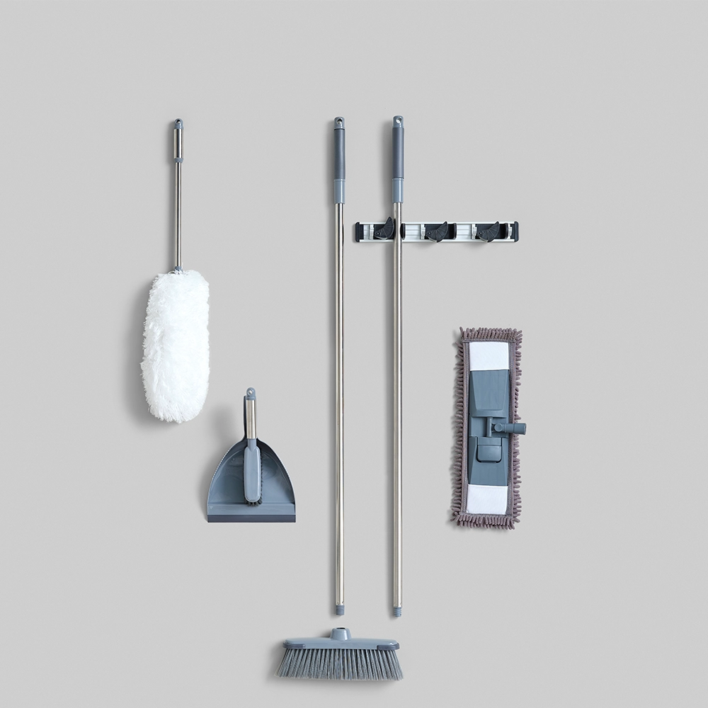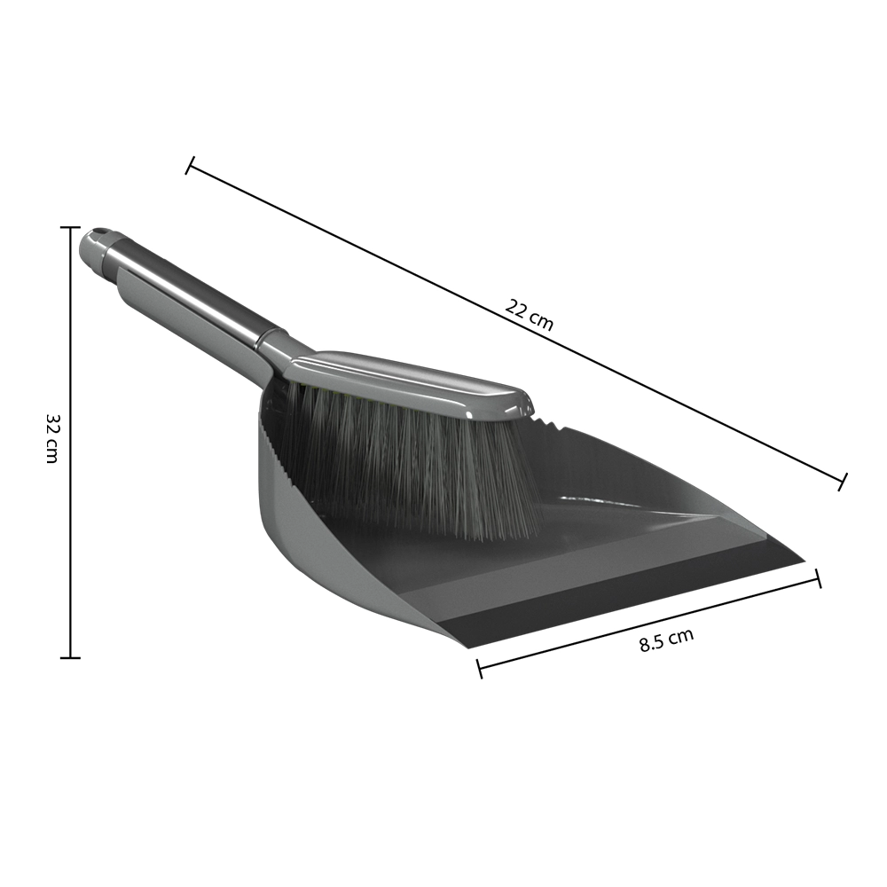 De blik en veger set van Five is een perfecte oplossing voor een grondige en efficiënte schoonmaak. De bezem is voorzien van een roestvrijstalen steel met een draaibare kop en een handige ophangdop, waardoor je de set eenvoudig kunt opbergen op een spindel of haak.