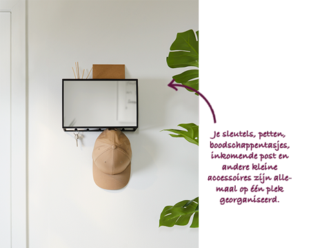 Wanneer je thuiskomt van je werk, of van de supermarkt, is het fijn als je je sleutels direct in de hal kunt opbergen. Hier kun je ook gelijk je inkomende post kwijt en eventuele boodschappentasjes. Dé perfecte organizer hiervoor is deze hal organizer van Umbra.