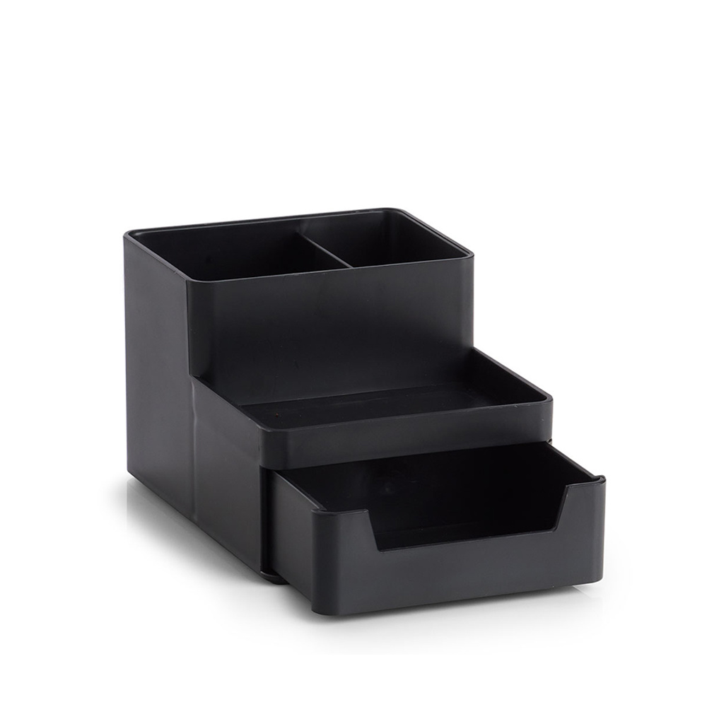 Deze bureau organizer zwart is volledig zelf samen te stellen. Combineer het accessoires bakje, pennenbakje en de brievenbak naar wens en zet de opberger daarna op je bureau of op kantoor.
