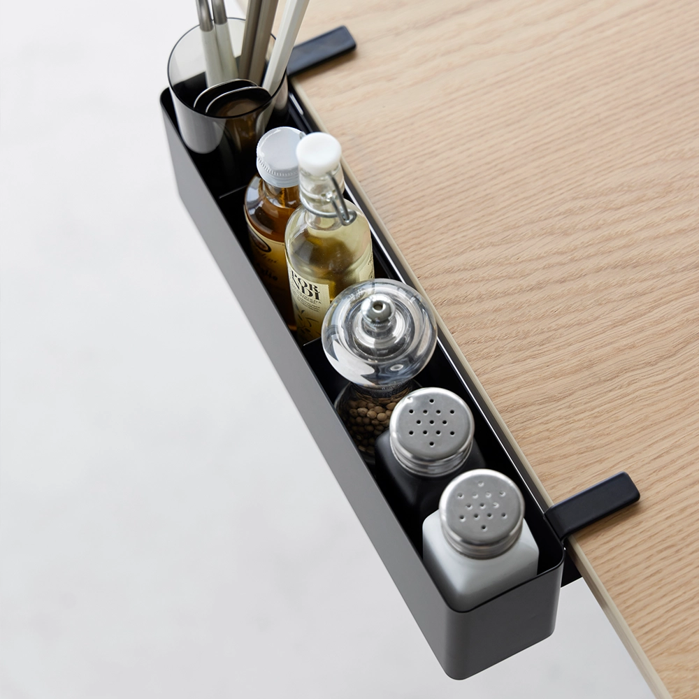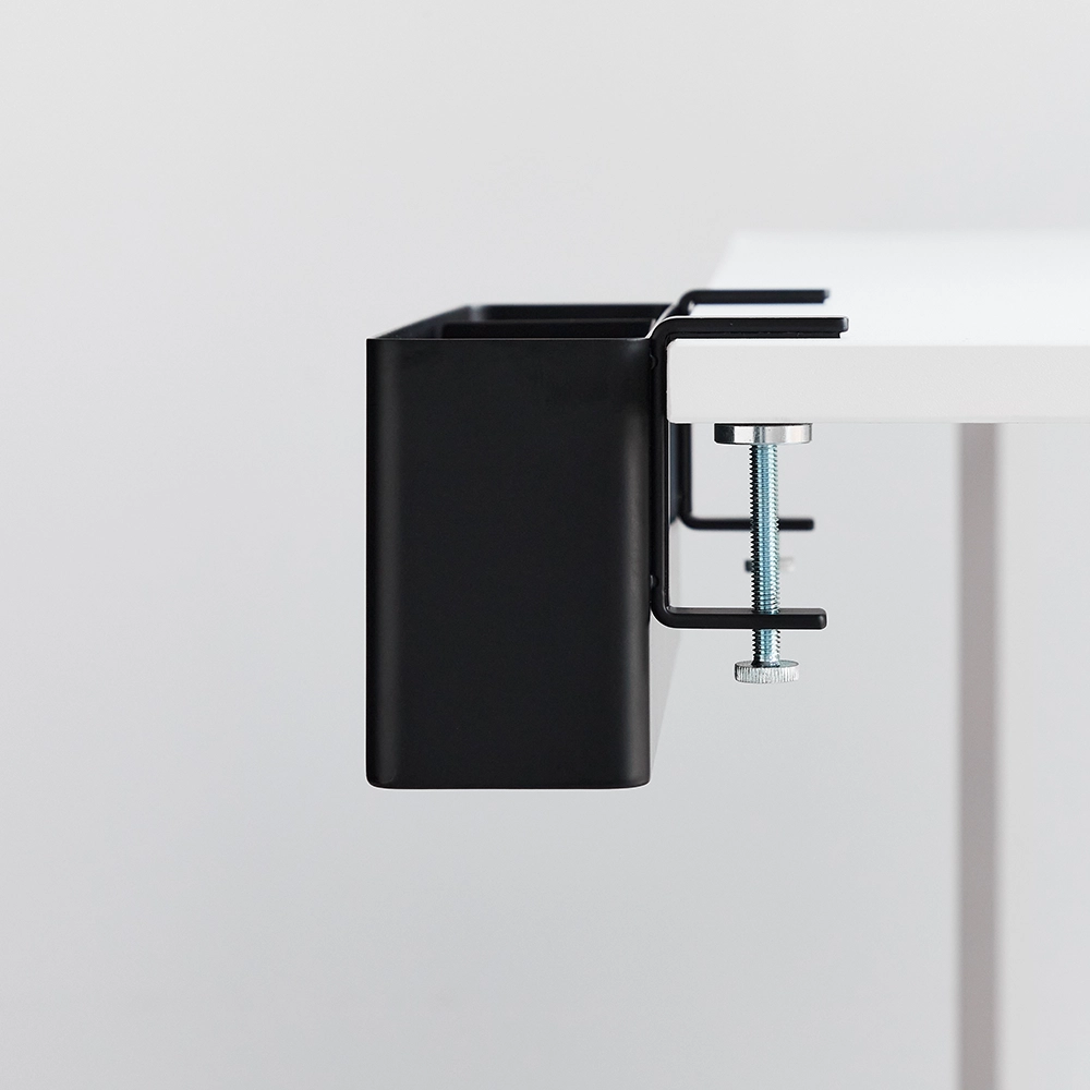 Het bureau bakje van Yamazaki is de perfecte oplossing voor het creëren van extra opbergruimte aan de zijkant van je bureau of tafel. Dankzij de verstelbare schroeven kan dit bakje eenvoudig aan de zijkant van je bureaublad worden geklemd, waardoor je direct meer ruimte hebt om kantoorartikelen, kabels en andere benodigdheden op te bergen.