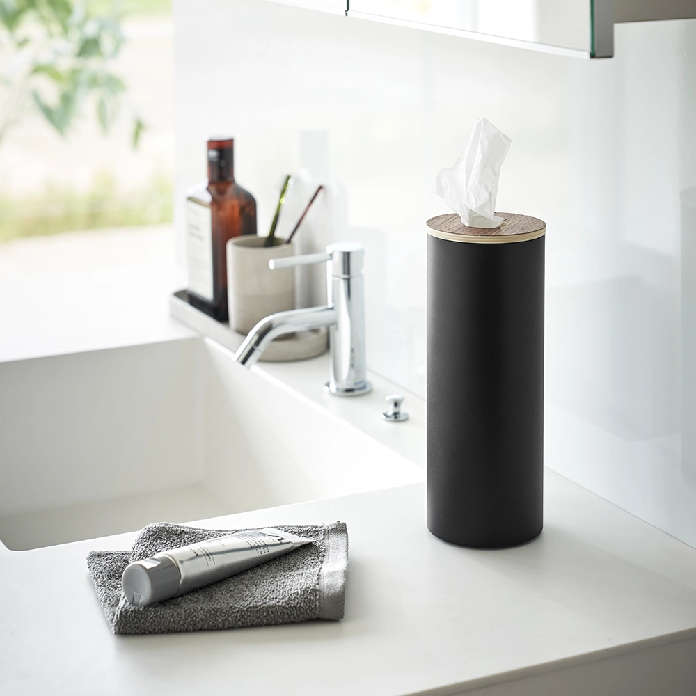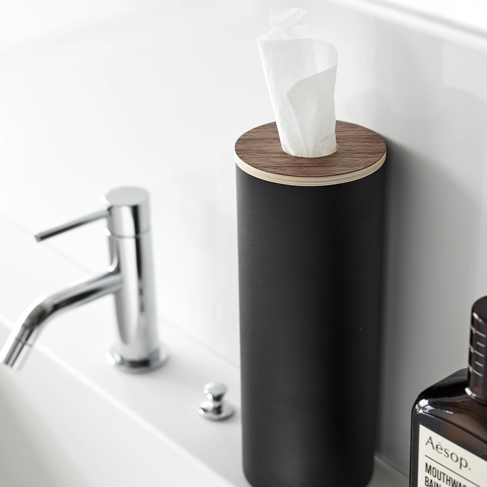 Cilinder tissuehouder Yamazaki - Zwart met hout