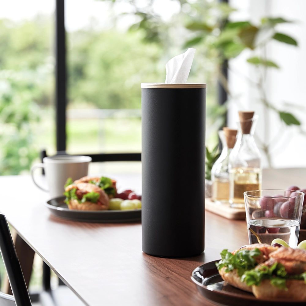 De cilinder tissuehouder van Yamazaki biedt een unieke en elegante manier om tissues of cosmetische doekjes op te bergen. Met zijn slanke, cilinder-vormige ontwerp voegt deze tissuehouder niet alleen een moderne touch toe aan je interieur, maar biedt hij ook voldoende ruimte voor een ruime hoeveelheid tissues, die eenvoudig met één beweging kunnen worden gepakt.