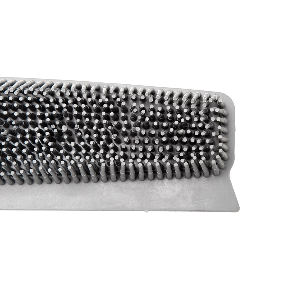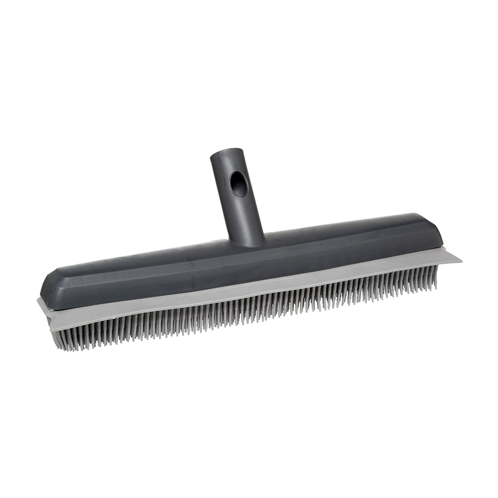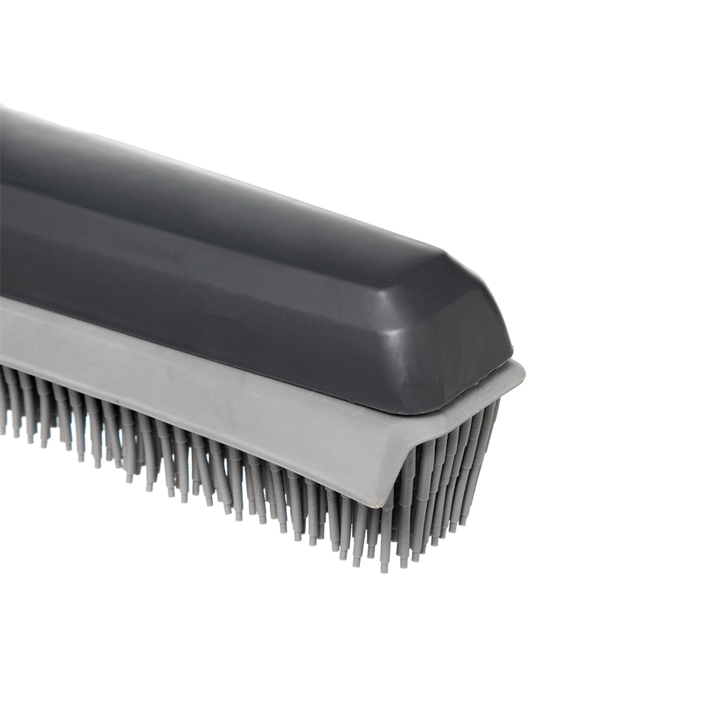 2-in-1 rubberen bezemkop met vloertrekker die compatibel is met de telescopische steel. Hygiënischer en bestendiger, houdt borstelharen gemakkelijk vast. Aan één zijde van de borstel zit tevens een vloertrekker. Op deze manier kun je onder andere de badkamervloer nat maken, stevig schrubben met de rubberen borstel en vervolgens schoontrekken met de vloertrekker.