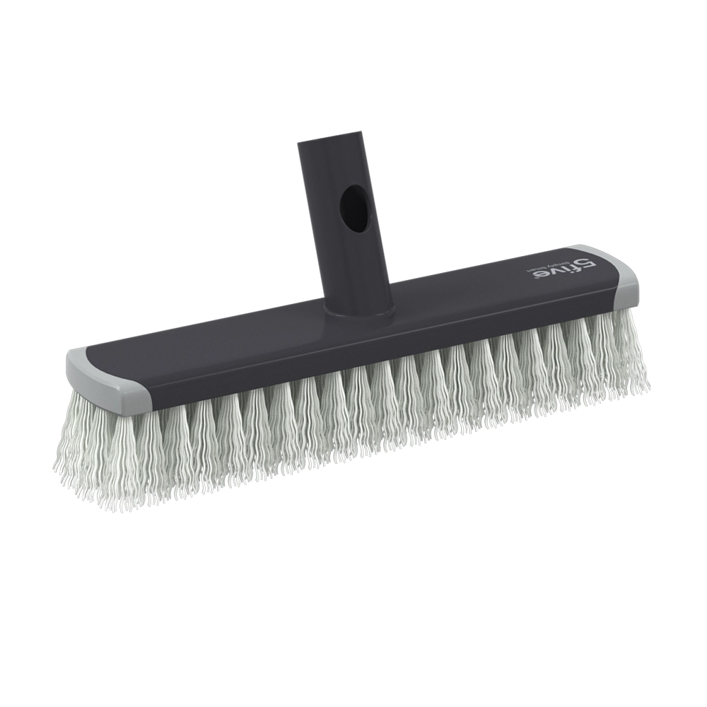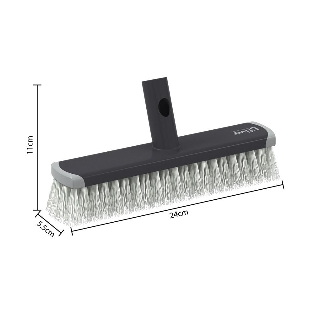 Deze schrobber, ofwel borstelbezem, klik je eenvoudig aan de telescopische steel. De schrobber heeft harde haren, is 24 cm breed, en heeft rubberen uiteinden aan beide kanten van de bezemkop om te voorkomen dat je meubels en plinten beschadigd. De schrobber is voor zowel binnen- als buitengebruik.