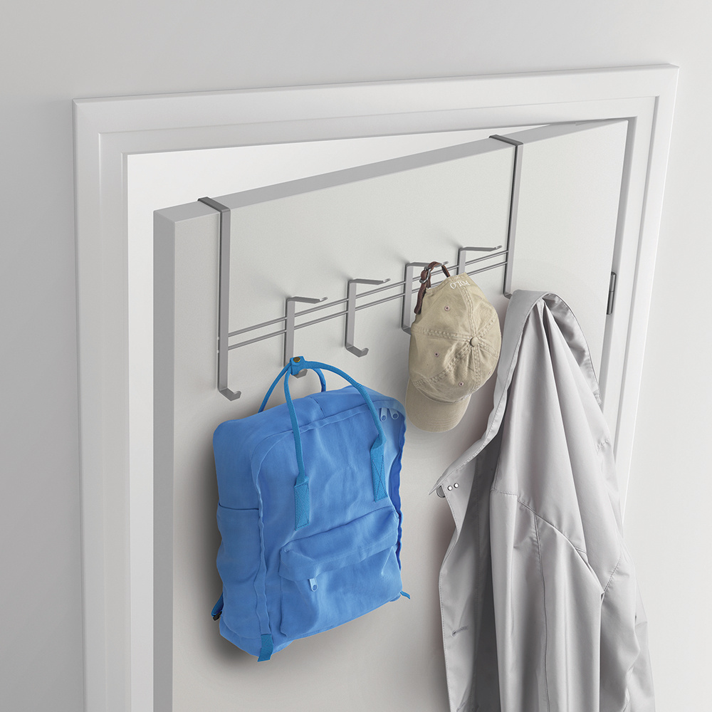 Met deze grijze deurkapstok kun je eenvoudig (bad)jassen en handdoeken ophangen over de deuren van je slaapkamer, badkamer of in de hal. Beschikbaar voor stompe en opdekdeuren.