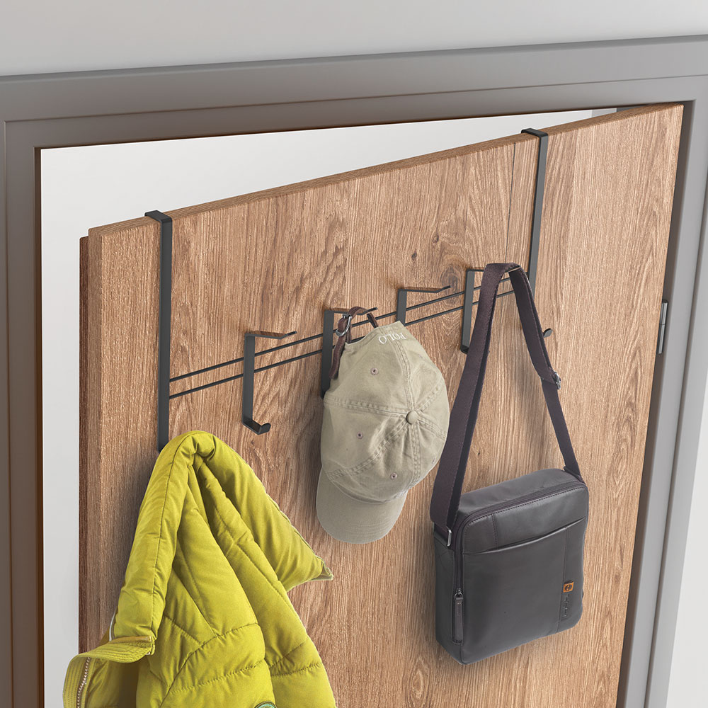 - 6 haken - opdekdeur: 44,5 cm breed, 4,5 cm diep en 21 cm hoog. Geschikt voor een deurdikte van 2 cm (opdekdeur)