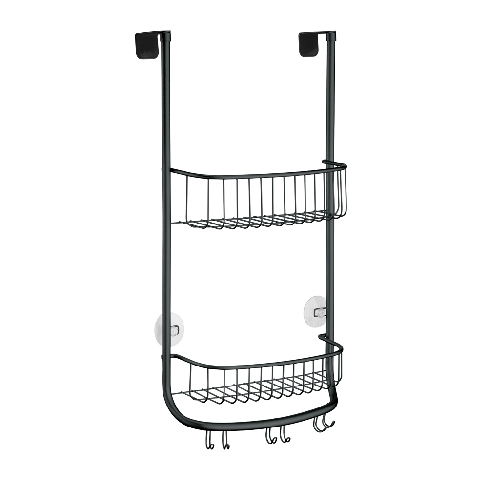 iDesign heeft gekozen voor een stevig ontwerp waarbij het doucherek strak tegen de douchewand aan hangt. Tussen de douchemandjes in zitten twee zuignappen die ervoor zorgen dat het rek niet verschuift. Zo heb je zonder boren een doucherek met dezelfde stevigheid. Bekijk ook de andere opbergers uit de Forma collectie van iDesign.
