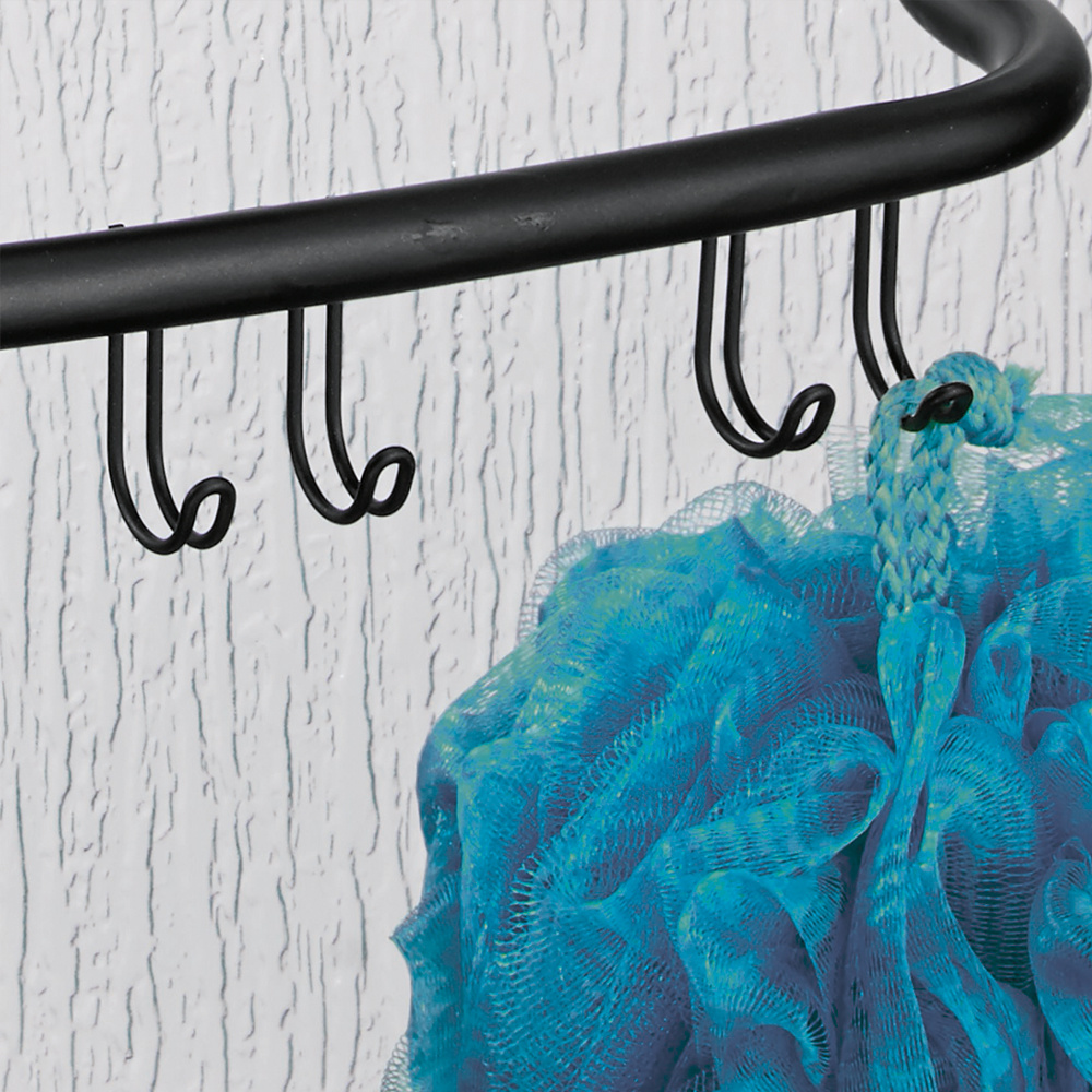 Het badkamerrek is 30,5 bij 16,5 centimeter. Het neemt hangend 61 centimeter van de douchewand in beslag. De maximale dikte waar de ophangbeugels overheen passen is 5,1 centimeter. De haken van het doucherek zijn afgewerkt met rubber om krassen op de douchewand te voorkomen en waardoor het niet schuift. Je kan het badkamerrek in het grijs of in het zwart bestellen.