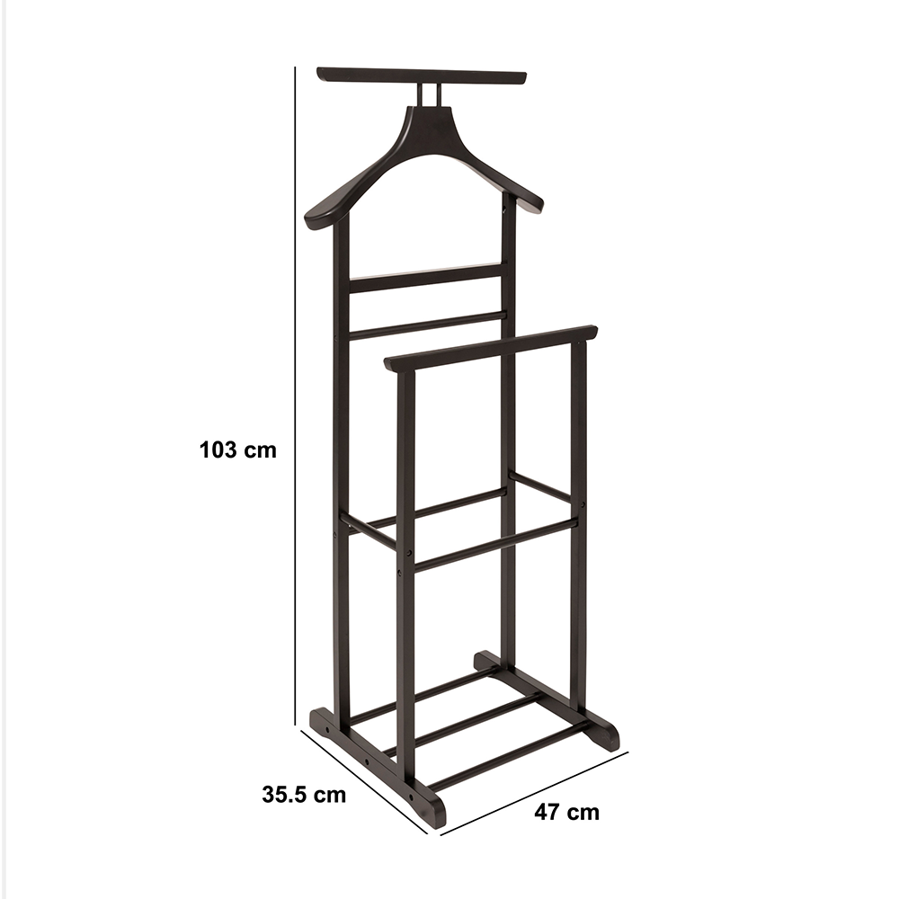 Zwarte Dressboy van Five® is de perfecte oplossing voor wie zijn kostuums, jassen en accessoires netjes en georganiseerd wil ophangen. Deze luxe dressboy is gemaakt van hoogwaardig hout en biedt alles wat je nodig hebt om je kleding netjes te ordenen.