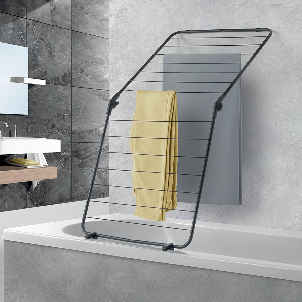 Dit droogrek voor de badkuip is een veelzijdige oplossing voor elke badkamer. Het kan eenvoudig in of op de badkuip geplaatst worden zonder montage, en dankzij het inklapbare ontwerp neemt het weinig ruimte in beslag wanneer het niet in gebruik is.