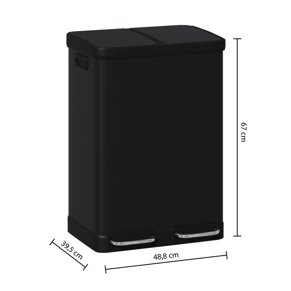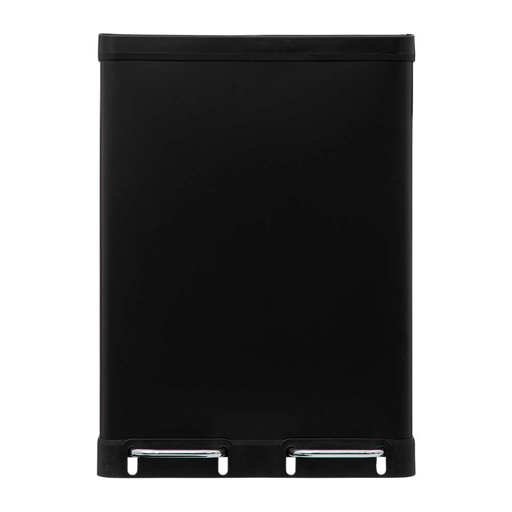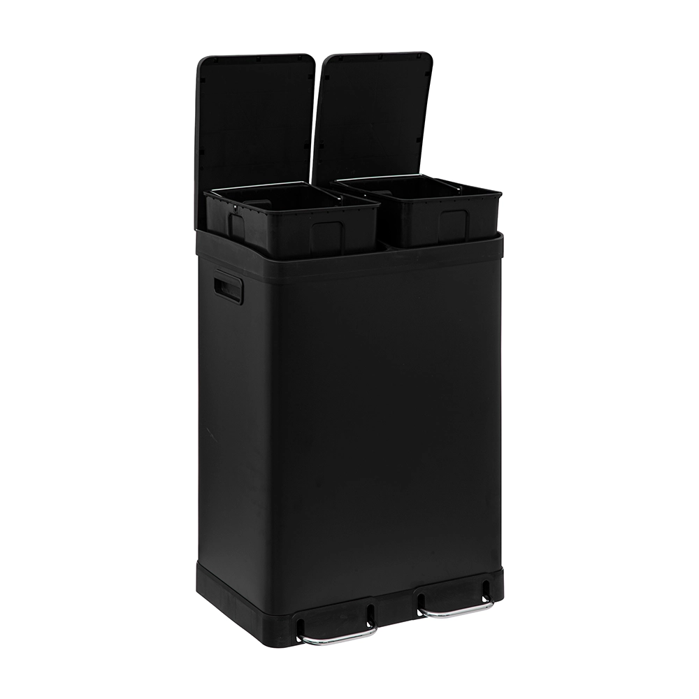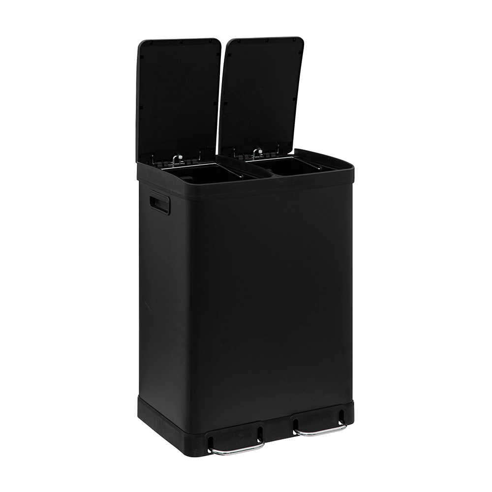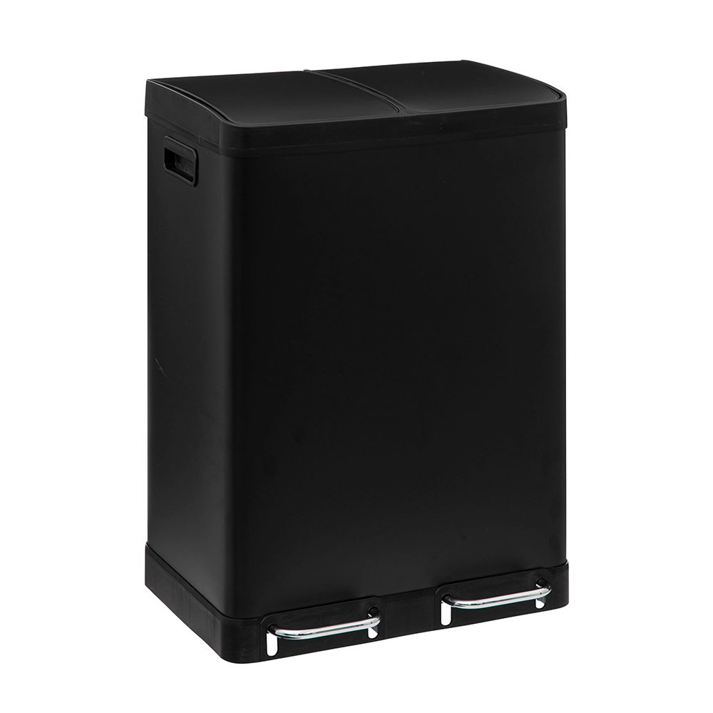 Met de dubbele pedaalemmer van 60 liter hoef je nooit meer te twijfelen waar je jouw afval moet weggooien. Deze metalen prullenbak heeft een inhoud van 60 liter, verdeeld over twee compartimenten van elk 30 liter.