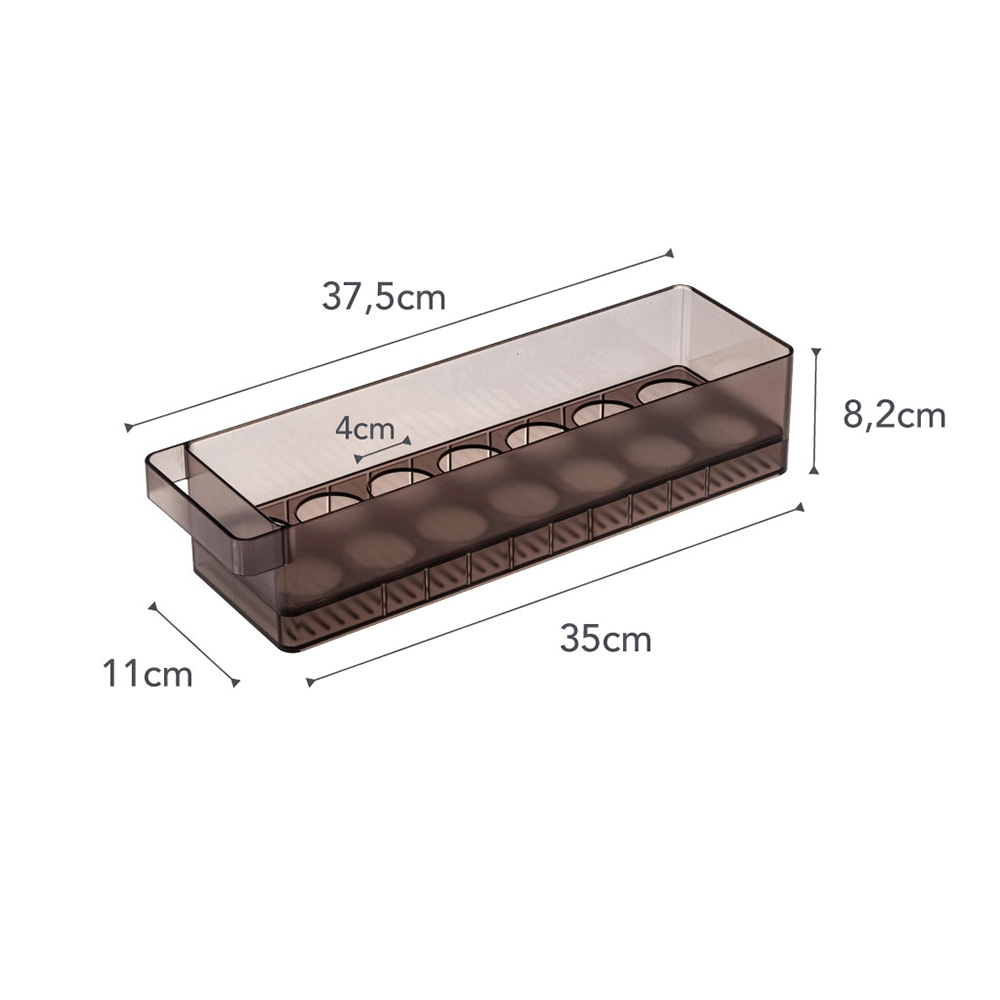 Dankzij het slimme ontwerp en de handige handgreep is het bakje gemakkelijk uit de koelkast te trekken, zodat je eieren veilig en eenvoudig kunt pakken. Gemaakt van kwalitatief polystyreen, is dit eierbakje niet alleen stevig, maar ook licht van gewicht, wat bijdraagt aan het gebruiksgemak. Met een breedte van 11 cm, een diepte van 37,5 cm en een hoogte van 8,2 cm past het perfect in de meeste koelkasten, waardoor je ruimte optimaal wordt benut. Of je nu een grote voorraad eieren wilt opbergen of gewoon je koelkast netjes wilt houden, dit eierbakje is de ideale oplossing.