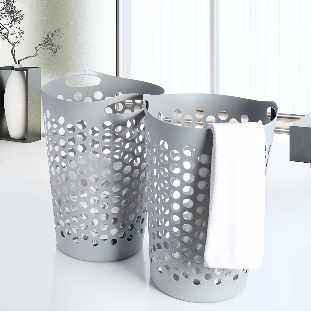 Met zijn geperforeerd ontwerp biedt deze wasmand uitstekende ventilatie en luchtstroom, waardoor je was goed kan ademen. Deze handige flexibele wasmand is gemaakt van hoogwaardig, recyclebaar kunststof en is UV-bestendig, zodat hij zijn kwaliteit behoudt, zelfs bij gebruik in zonnige ruimtes of buiten. De grijze kleur geeft de mand een neutrale, moderne uitstraling die naadloos aansluit bij elk interieur, of het nu gaat om uw wasserij, badkamer of zelfs slaapkamer. Het flexibele ontwerp maakt het mogelijk om de mand te buigen en manipuleren als dat nodig is, zonder dat dit ten koste gaat van de vorm of functionaliteit. Reinigen is een fluitje van een cent; veeg de mand eenvoudig af met een zachte doek bevochtigd met water en een mild afwasmiddel of zeep. En wat transport betreft – geen zorgen. De twee handige handgrepen zorgen ervoor dat u uw wasgoed gemakkelijk kunt dragen waar het ook moet zijn.