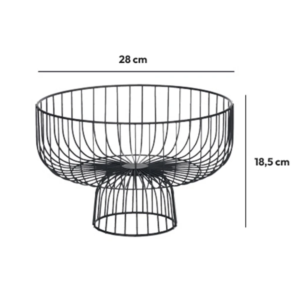 Deze fruitschaal is gemaakt van metaal en heeft een mooie, zwarte kleur. In totaal is de fruitmand 28 cm in diameter en 18,5 cm hoog. Het gewicht van de schaal is 0,4 kg.