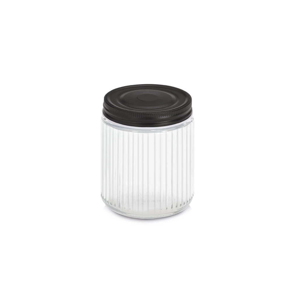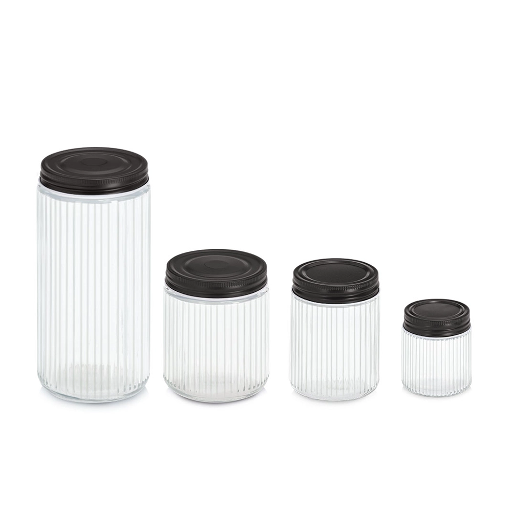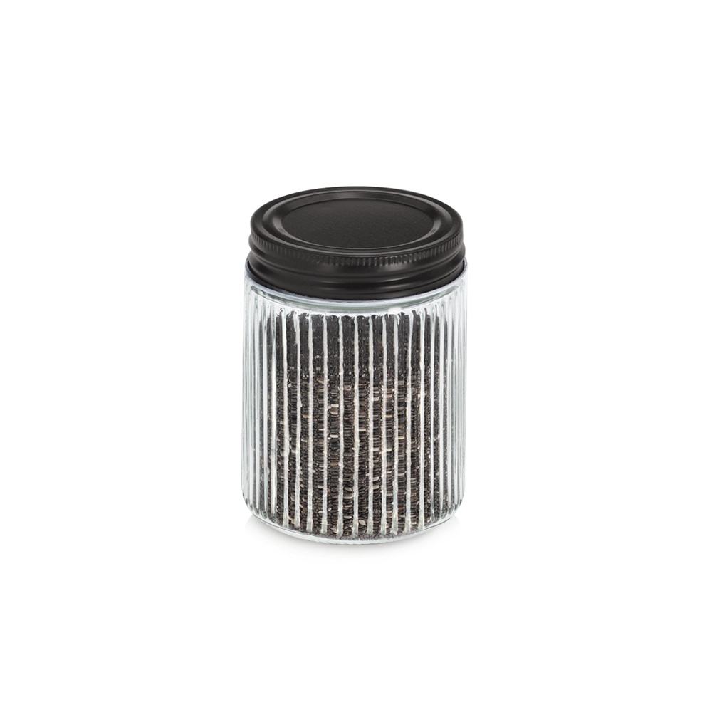 De zwarte metalen draaideksel sluit stevig af met een siliconen rand, deze luchtdichte afsluiting zorgen ervoor dat je ingrediënten vers en beschermd blijven tegen lucht en vocht. Deze glazen voorraadpot is perfect voor het bewaren van pasta, rijst, meel, noten, kruiden of andere droge ingrediënten. Dankzij het transparante glas zie je in één oogopslag wat erin zit, terwijl het gestructureerde ontwerp zorgt voor een moderne en elegante uitstraling. Of je hem nu in een open keukenkast, op een plank of op het aanrecht plaatst, deze glazen pot is niet alleen praktisch maar ook een decoratief element in je interieur. Beschikbaar in de volgende formaten: