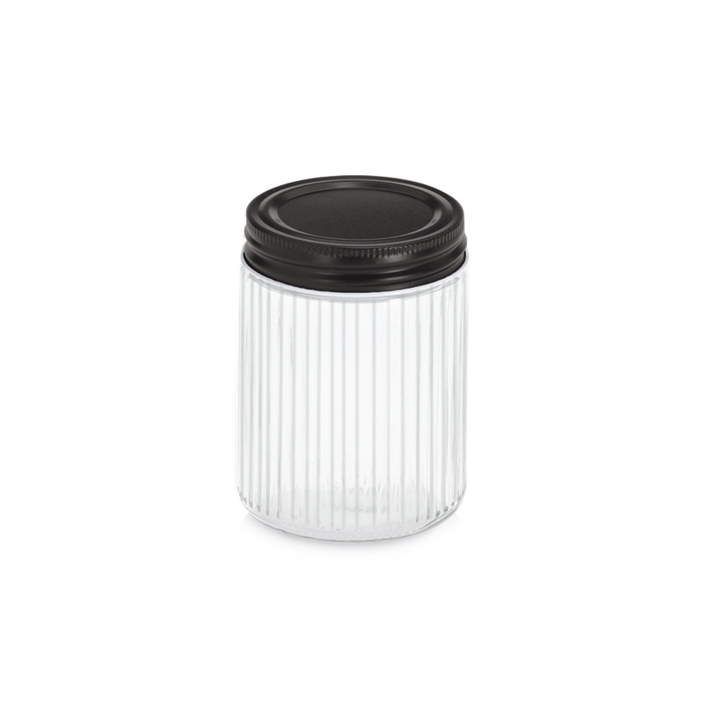 De zwarte metalen draaideksel sluit stevig af met een siliconen rand, deze luchtdichte afsluiting zorgen ervoor dat je ingrediënten vers en beschermd blijven tegen lucht en vocht. Deze glazen voorraadpot is perfect voor het bewaren van pasta, rijst, meel, noten, kruiden of andere droge ingrediënten. Dankzij het transparante glas zie je in één oogopslag wat erin zit, terwijl het gestructureerde ontwerp zorgt voor een moderne en elegante uitstraling. Of je hem nu in een open keukenkast, op een plank of op het aanrecht plaatst, deze glazen pot is niet alleen praktisch maar ook een decoratief element in je interieur. Beschikbaar in de volgende formaten:
