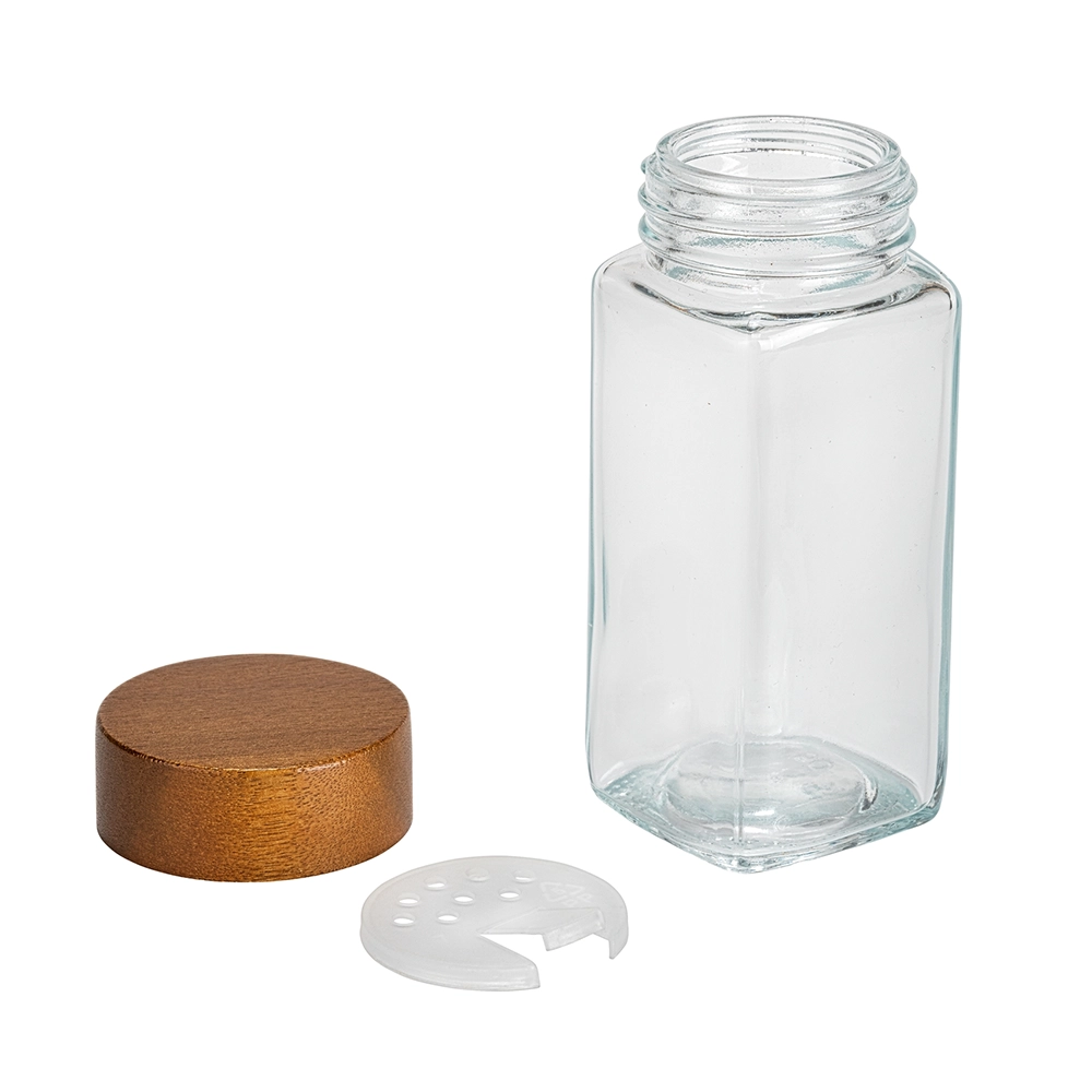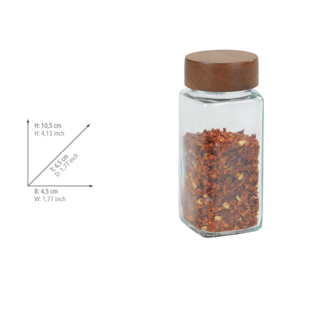 Deze rechthoekige glazen kruidenpotjes met acaciahouten deksel zijn de perfecte aanvulling voor elke keuken. Met een inhoud van 120 ml