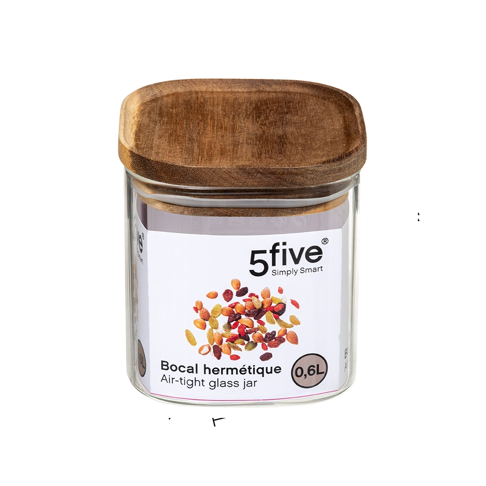 Glazen voorraadpot 600 ml acacia deksel Five®