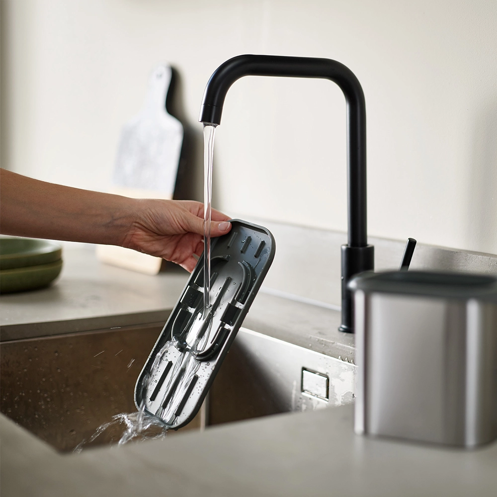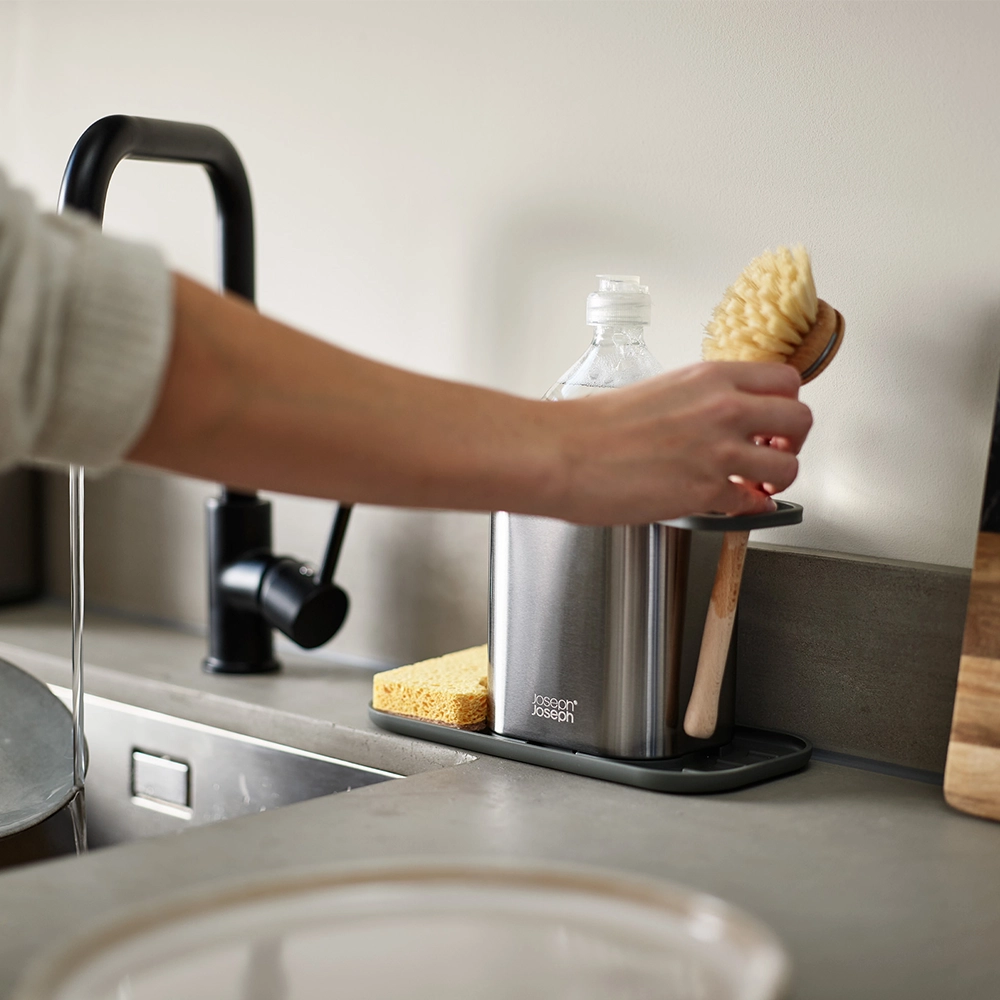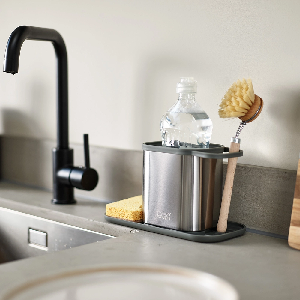 De gootsteen caddy van Joseph Joseph is demontabel, waardoor hij eenvoudig te reinigen is. Dit zorgt voor optimale hygiëne in je keuken, terwijl het strakke ontwerp bijdraagt aan een moderne uitstraling. Of je hem nu gebruikt als afwasborstelhouder of voor het organiseren van je schoonmaakspullen, deze caddy maakt je dagelijkse routine een stuk eenvoudiger.