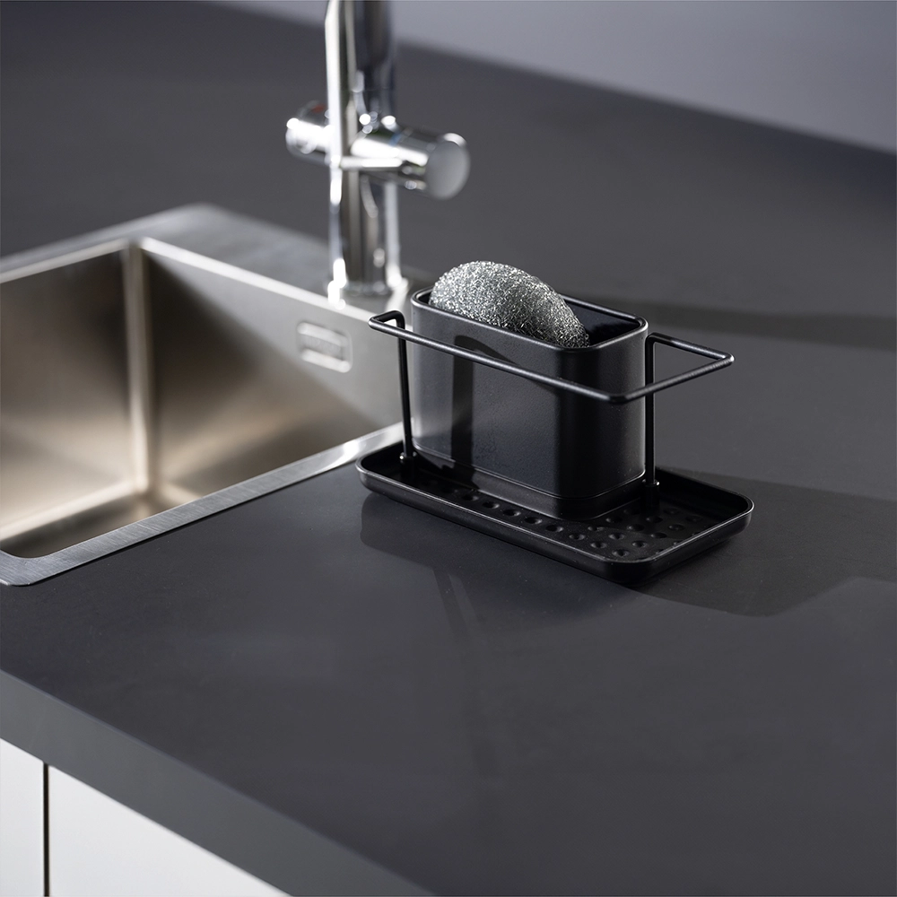 Deze handige organizer is ontworpen met het oog op functionaliteit, zonder in te leveren op esthetiek. Met afmetingen van 21 cm breed, 10 cm diep en 12 cm hoog past netjes achter je gootsteen of is hij ideaal voor gebruik op de camping. Het strakke design in een prachtige zwarte uitvoering zorgt ervoor dat deze organizer nergens misstaat.