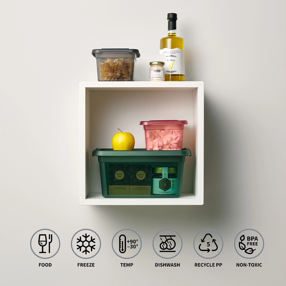 Deze stevige opbergbox combineert functionaliteit met een modern uiterlijk. De subtiele reliëfdetails in de hoeken en op het deksel geven de box een unieke uitstraling. Of je nu speelgoed, kleding, kabels of andere items wilt opbergen, deze box is de ideale keuze. Het slimme modulaire ontwerp maakt stapelen eenvoudig, zowel met dezelfde als met verschillende formaten. Plaats bijvoorbeeld twee kleinere boxen bovenop een grotere om optimaal gebruik te maken van je ruimte. De stevige groene clipsluitingen zorgen ervoor dat de inhoud veilig en beschermd blijft, terwijl de robuuste hoeken goed tegen een stootje kunnen!