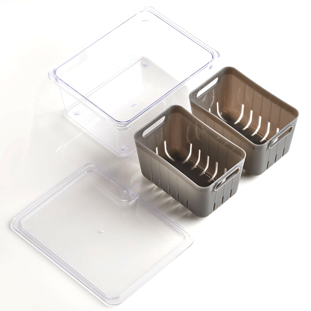 Met deze fruit bakjes van Zeller heb je nooit meer last van een koelkast vol met plastic bakjes en zakjes. Want voortaan bewaar je je fruit en groenten in deze koelkast bakjes. Gebruik de uitneembare bakjes met sleufjes als zeef en sluit de bak na het wassen af met het deksel Hierdoor kun je lang je fruit bewaren in de koelkast.