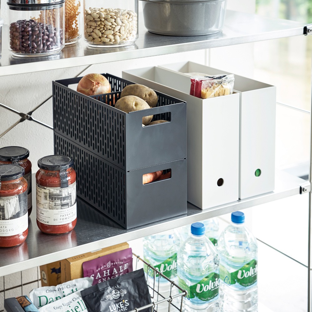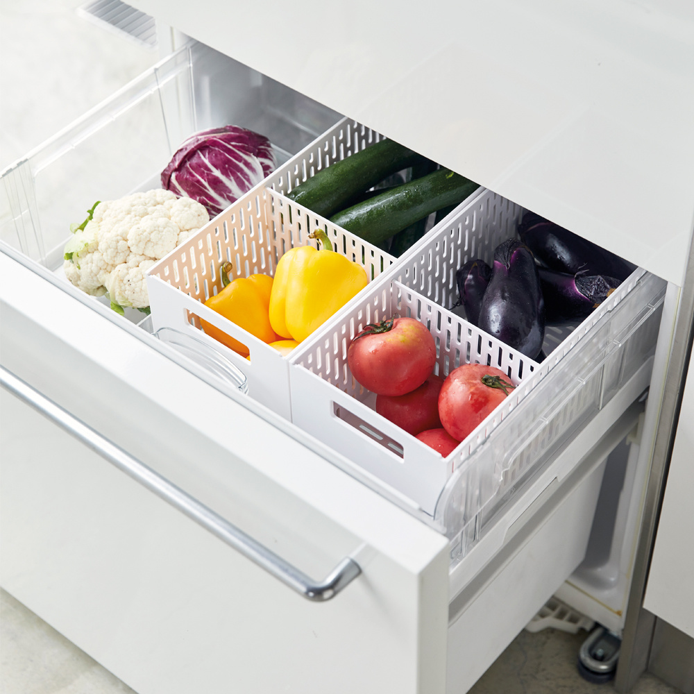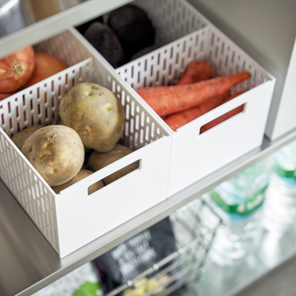 Deze stapelbare groentemanden zijn onmisbaar bij een slimme inrichting van je voorraadkast. De manden hebben twee vakken die je zelf kunt indelen door de verdeler te verplaatsen, waardoor je de grootte van de vakken zelf kunt kiezen.