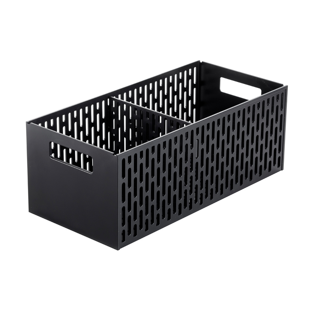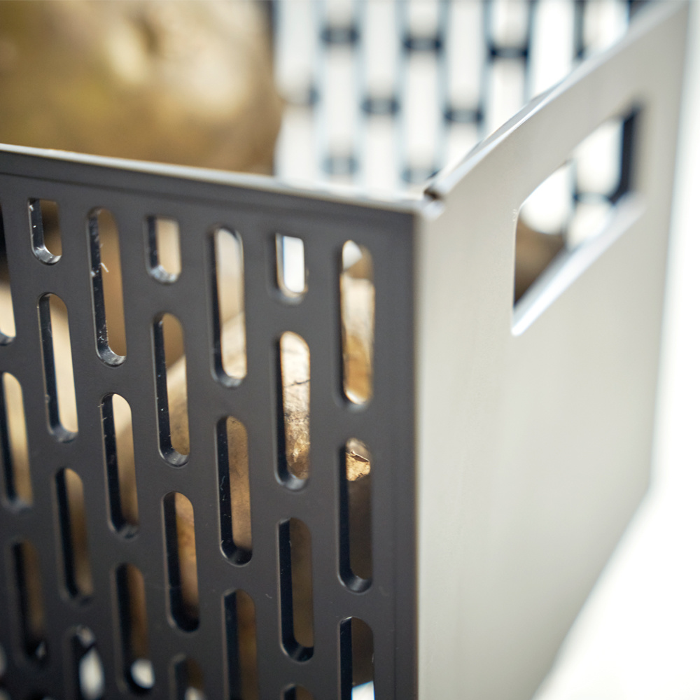 De stijlvolle bak heeft een uitgesneden patroon, waardoor je de inhoud deels kunt zien. De mand heeft geen deksel, maar wel kun je meerdere exemplaren perfect stapelen. Omdat de grootte van de vakken makkelijk aan te passen is, kun je direct beginnen met het logisch verdelen van al jouw etenswaren. Ook pak je de manden binnen een mum van tijd uit de kast door middel van de handvaten, en heb je je aardappelen, uien en andere etenswaren binnen handbereik.