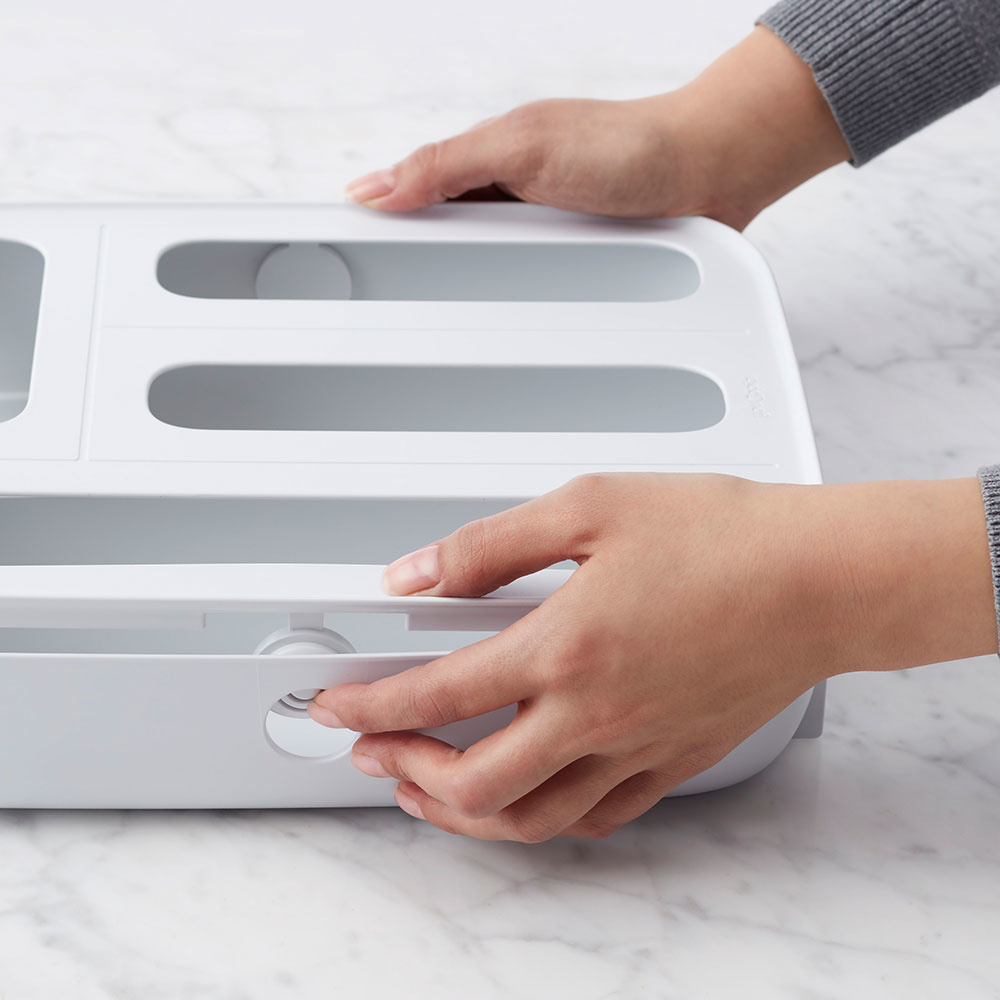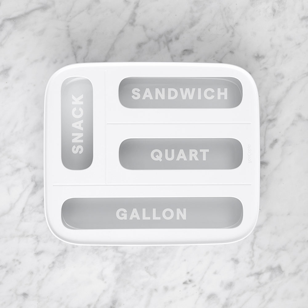 Deze hersluitbare zakjes organizer is een praktische opberger voor in de keukenlade. Hiermee berg je je boterhamzakjes, voedselzakken en ziplock zakjes netjes op. Daarnaast is er ook plek voor kleinere zakjes of elastiekjes.