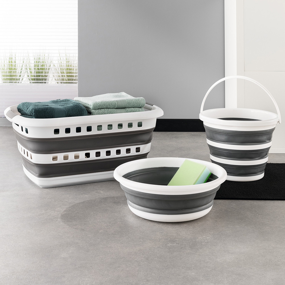 Deze opvouwbare wasmand is inklapbaar en gemakkelijk op te bergen. Deze wasmand heeft een inhoud van 45 liter.