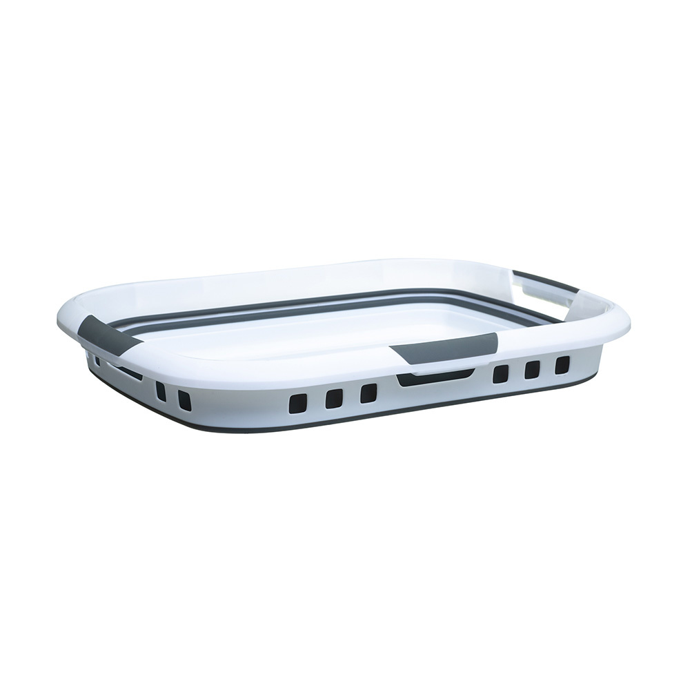 De grijze delen van deze wasmand van Ezystorage zijn van flexibel TPE waardoor deze wasmand inklapbaar is. De rest is gemaakt van stevig kunststof. De mand heeft handige handvaten en is 62 cm breed, 44 cm diep en 27,5 cm hoog.