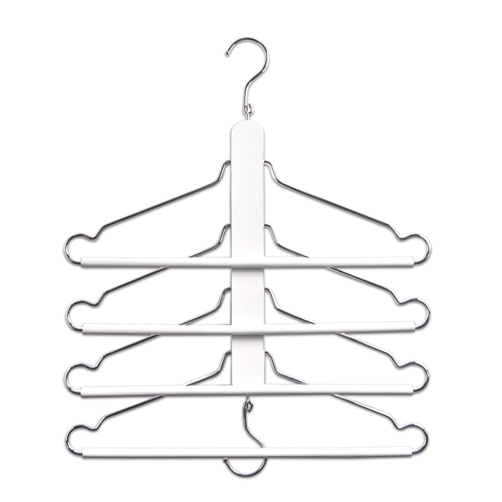Met deze houtenbroekhanger kun je meerdere broeken horizontaal of verticaal ophangen. De broekhanger heeft twee hangers aan weerszijden waardoor je de kledinghanger horizontaal uitklapt of inklapt en deze verticaal hangt en daardoor ruimte bespaart in je kast.