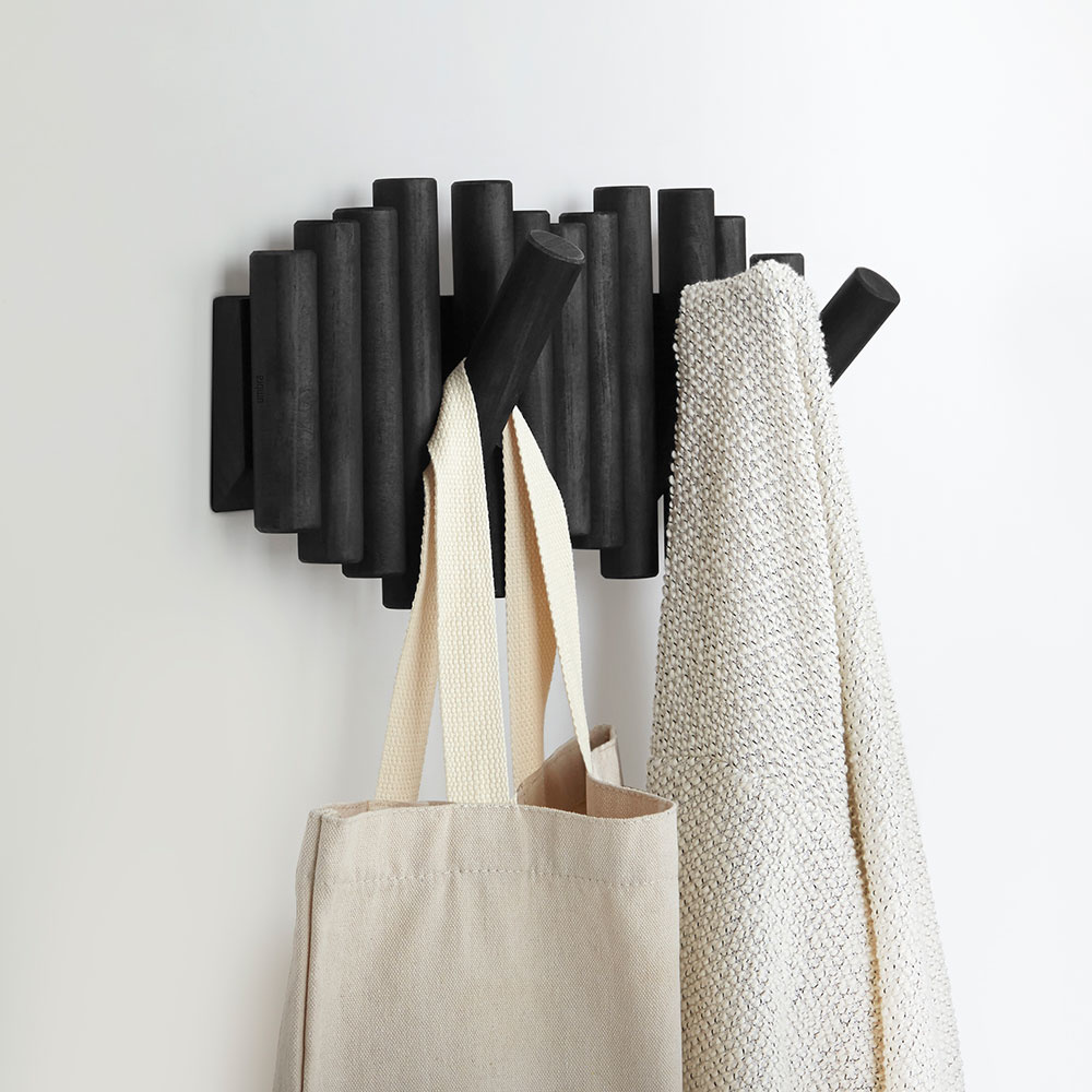 Houten kapstok muur inklapbare haken Umbra - Zwart