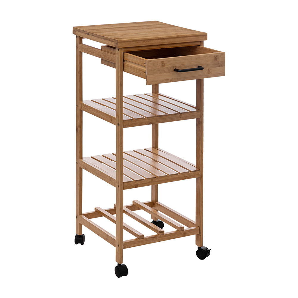 Deze keukentrolley met lades is gemaakt van bamboe en heeft een houten kleur. De afmetingen van de trolleys zijn: