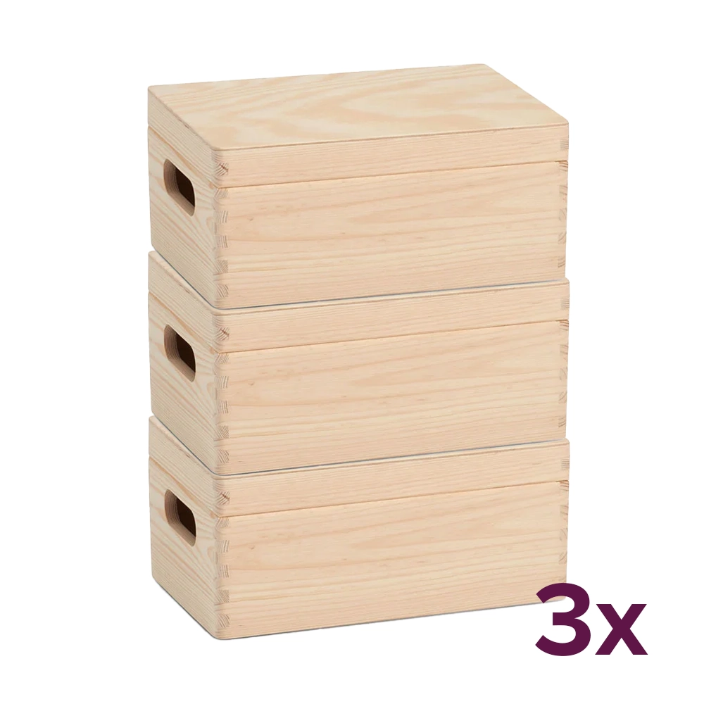 Deze kisten zijn gemaakt van robuust, onbehandeld grenenhout en zijn beschikbaar in 4 verschillende formaten: