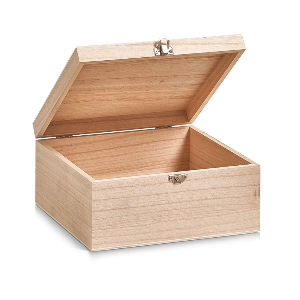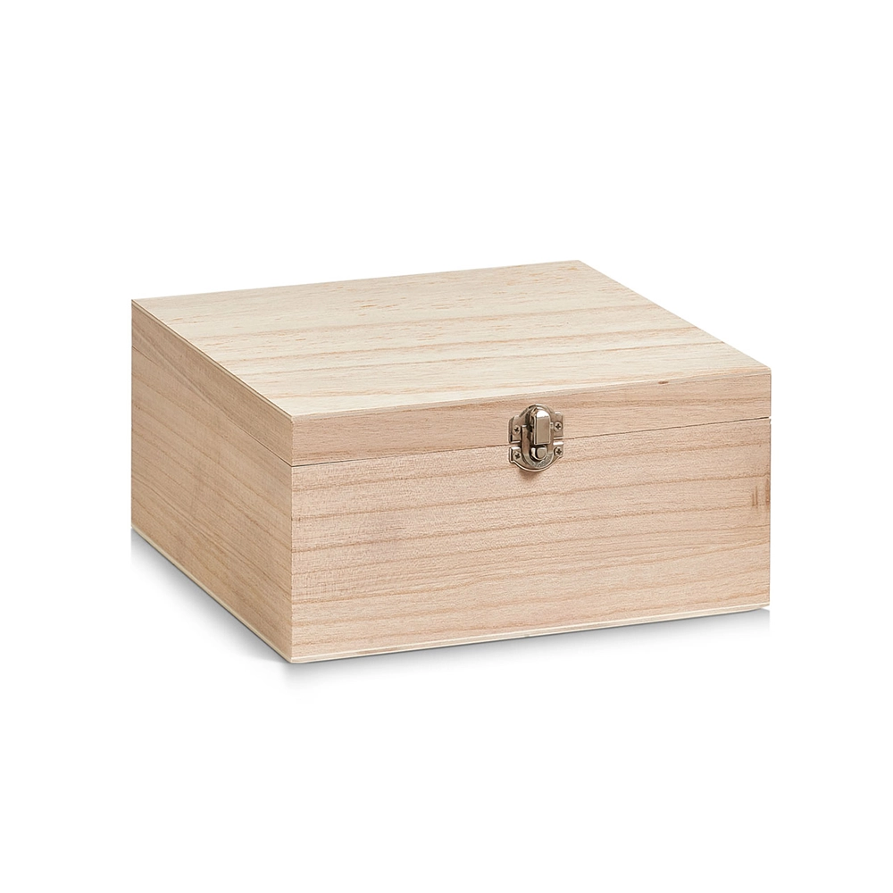 Dankzij de stevige metalen sluiting blijven jouw spullen veilig opgeborgen, terwijl het deksel ervoor zorgt dat alles netjes uit het zicht blijft. Deze kistjes zijn perfect voor het bewaren van sieraden, documenten, kantoor accessoires of andere kleine benodigdheden. Deze houten kistjes zijn gemaakt van onbehandeld massief hout en zijn daardoor ook geschikt om naar wens te personaliseren. Verf, lak of beits de kistjes in een kleur die perfect past bij jouw interieur. De stevige constructie en tijdloze uitstraling maken deze opbergdozen een must-have voor elk huishouden. Beschikbare formaten: