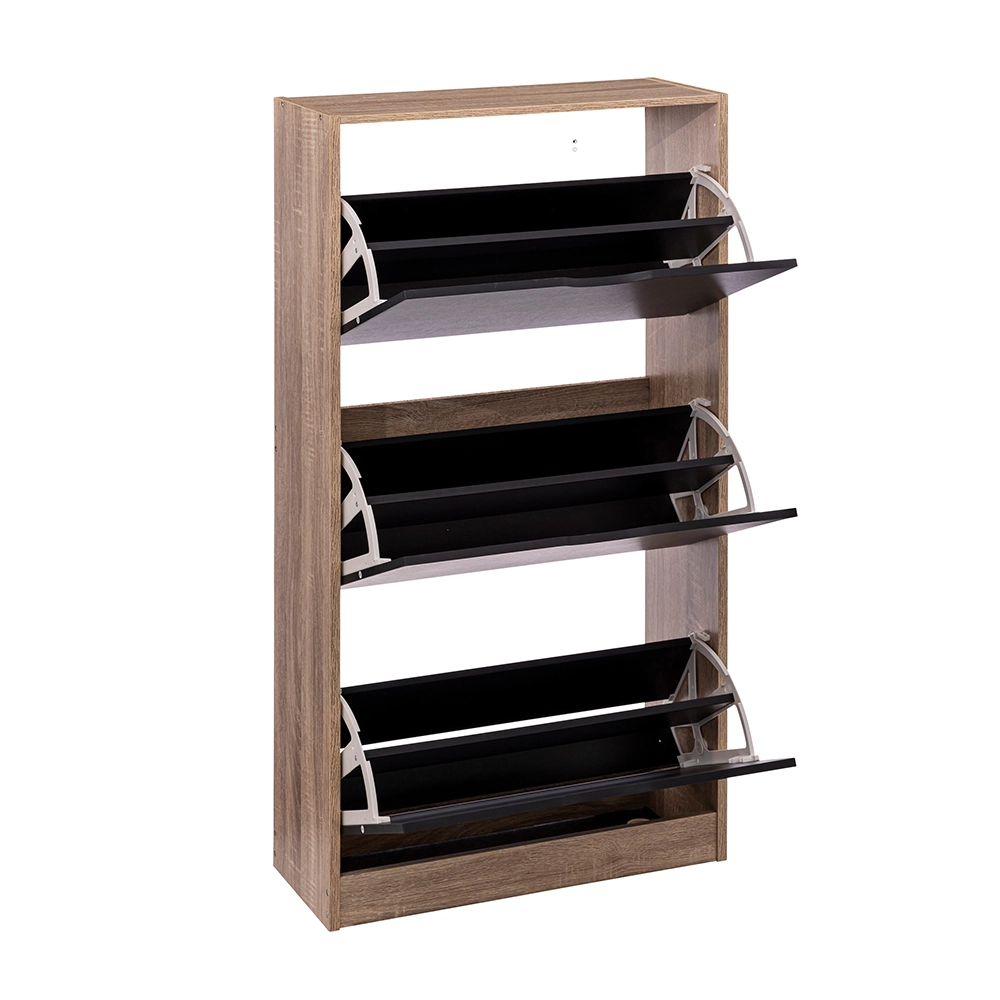 Op zoek naar een stijlvolle en praktische manier om je schoenen op te bergen? Deze houten schoenenkast met 3 lades biedt plek aan 18 paar schoenen en past vanwege zijn simplistische, maar stijlvolle ontwerp in elk interieur.