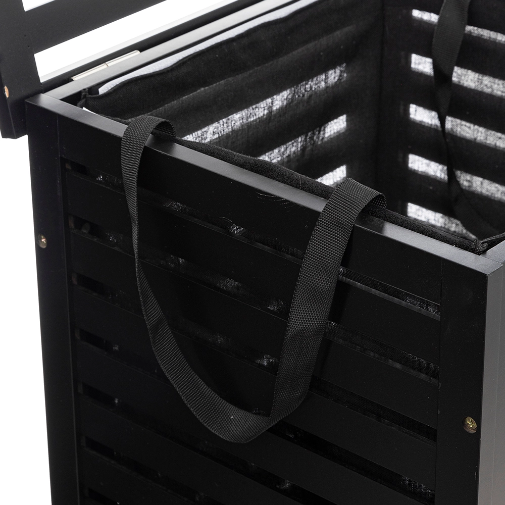 Deze houten zwarte wasmand is de perfecte aanvulling op jouw interieur. Met zijn stijlvolle uitstraling en praktische eigenschappen maakt hij van het opruimen van de was een fluitje van een cent.