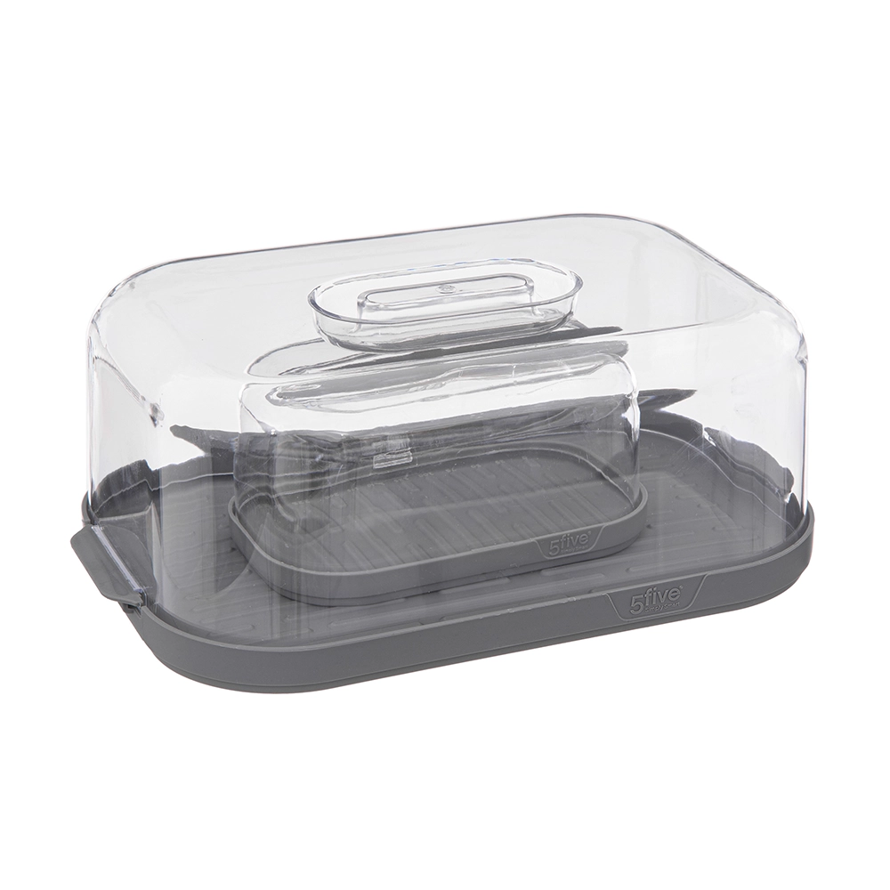 De kaasbak en botervloot van Five® zijn ontworpen met oog voor functionaliteit. Het transparante deksel zorgt niet alleen voor een strak uiterlijk, maar beschermt de inhoud ook tegen uitdrogen en geuren in de koelkast. Dankzij de hoogwaardige kunststof constructie zijn beide items eenvoudig schoon te maken, waardoor ze ideaal zijn voor dagelijks gebruik. Alleen geschikt voor handwas.