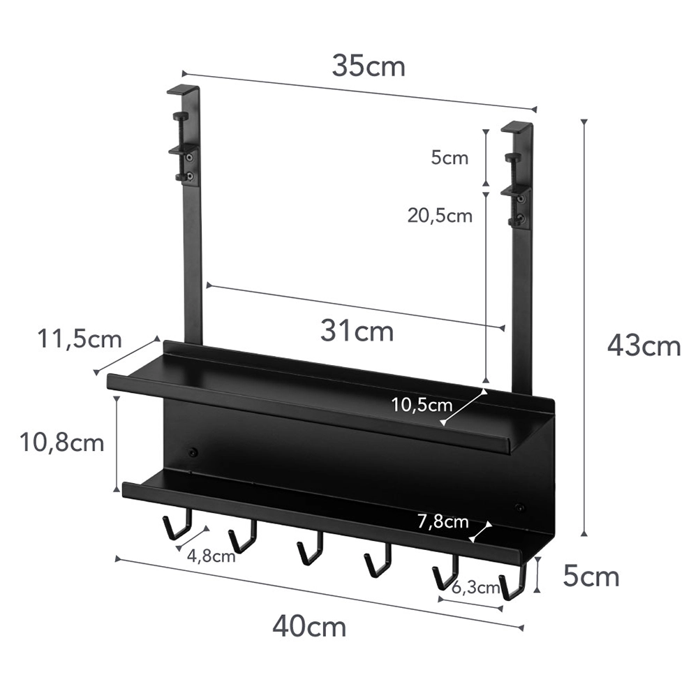 De organizer kan gemakkelijk onder het tafelblad worden geklemd, waardoor je werkoppervlak vrij blijft van rommelige kabels. De kabel organizer voor onder het bureau is niet alleen praktisch, maar ook stijlvol ontworpen. Gemaakt van duurzaam staal, biedt hij een stevige en betrouwbare manier om je kabels te organiseren en op hun plek te houden. Met een breedte van 40 cm, een diepte van 11,5 cm en een hoogte van 43 cm, biedt deze organizer voldoende ruimte voor al je kabels en kleine kantoorapparatuur. De zes haken maakt het eenvoudig om kabels te ordenen en voorkomt dat ze op de grond vallen.